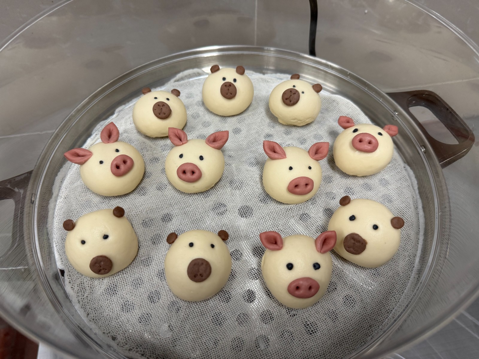 还需要经过一段时间的发酵,小猪才会长大。孩子们焦急地等待,时不时去看看小猪,问老师什么时候可以蒸了。小猪豆沙馒头终于被放入蒸笼中蒸熟。当蒸笼打开的那一刻,热气腾腾,香气四溢,一个个胖嘟嘟、憨态可掬的小猪豆沙馒头呈现在大家眼前,孩子们忍不住欢呼起来,捧在手里不舍得吃,实在忍不住了,咬一口,好吃。