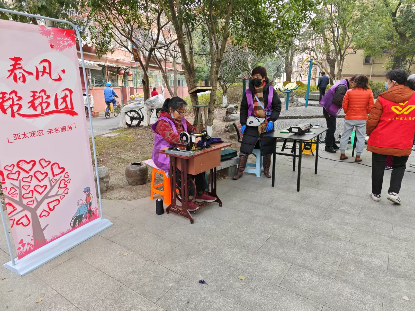 而在社区活动中心,另一部分春风帮帮团成员则开展了各类便民服务。有擅长磨刀的志愿者,为居民们磨刀;缝补衣服的志愿者在现场缝补,理发志愿者在现场为老年人理发;有志愿者们为居民免费塑封。