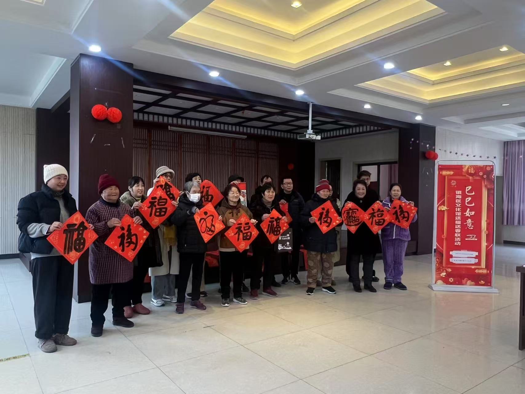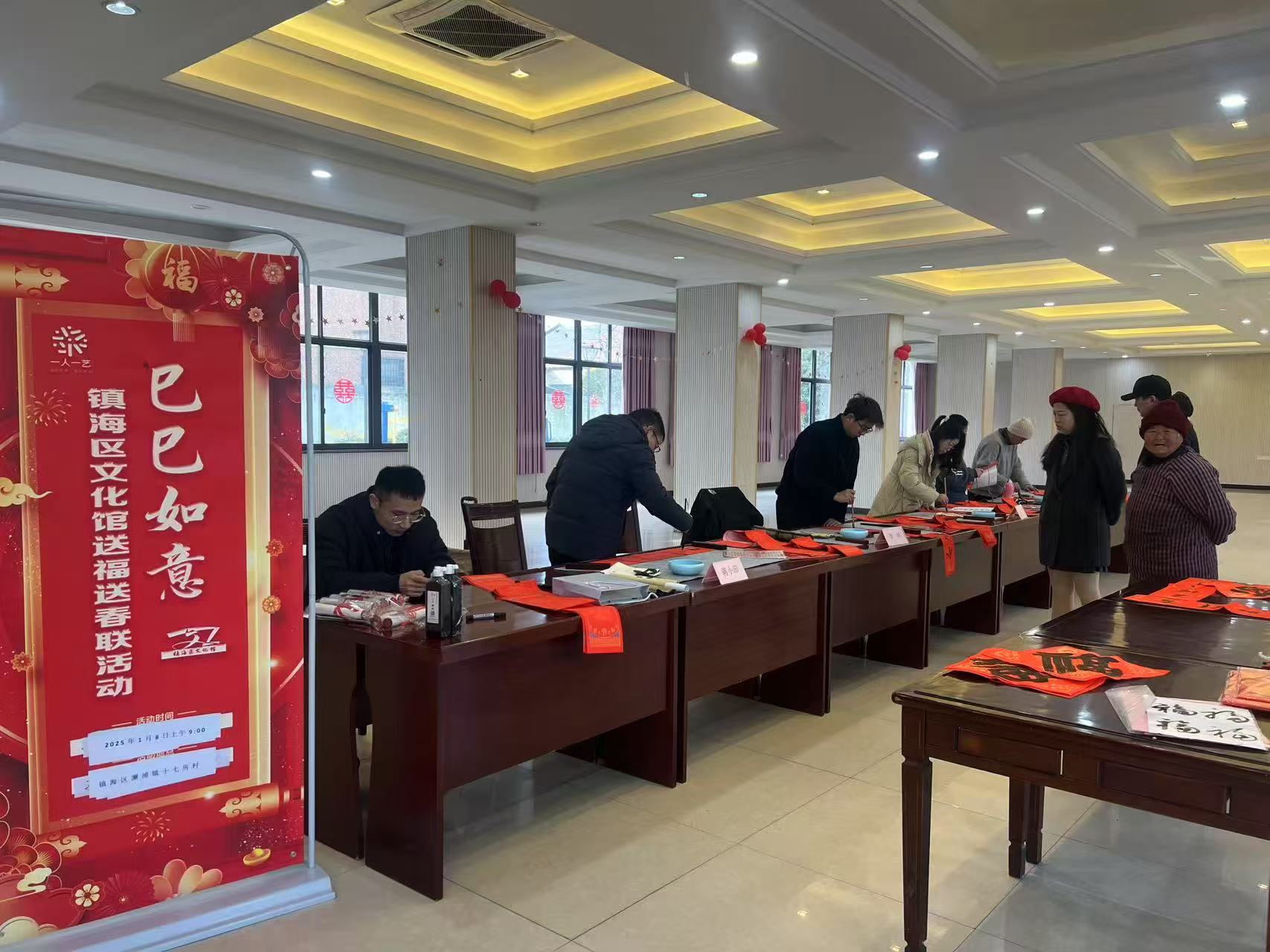 2025年1月8日上午,澥浦镇十七房村开展了一场温馨的“迎新春  送春联”活动。活动特邀镇海区文化馆的老师为村民们现场书写福字和对联。老师们铺纸倒墨,一笔一划间洋溢着浓厚的年味,每一幅作品都寄托着美好的祝福。