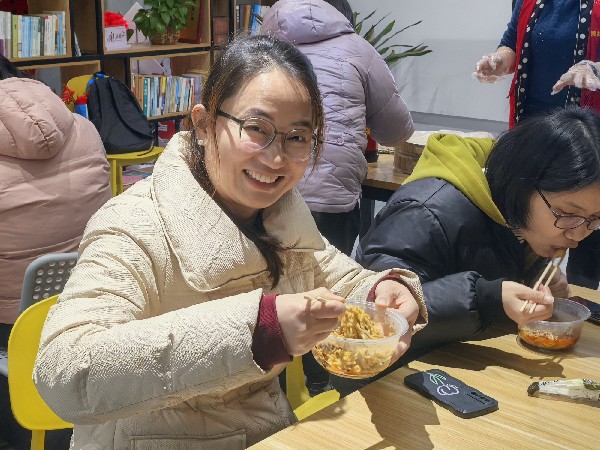 莜面是内蒙古地区的传统美食,有着悠久的历史,在游牧生活中,莜面是牧民们的主食,它富含蛋白质、膳食纤维等营养成分,具有暖胃、充饥、强身健体的功效。活动现场,来自内蒙古的社区居民徐丽娟先向大家介绍起莜面的起源与文化内涵。随后,徐丽娟开始现场演示莜面的制作过程。只见娴熟地将莜面揉成光滑的面团,然后用手灵巧地搓成粗细均匀的条状,轻轻一捏、一卷,一个个莜面制品就像变魔术般呈现在大家眼前。在场的居民们都被精湛的手艺所折服,不时发出赞叹声。最后,当一盘盘热气腾腾的莜面端上桌时,那扑鼻的香味让人垂涎欲滴。居民们迫不及待地拿起筷子,夹起一块莜面放入口中,细细咀嚼。莜面的口感爽滑劲道,麦香四溢,再配上特制的酱料,味道更是醇厚香浓。大家一边品尝着美味的莜面,一边交流着心得和感受,现场气氛十分融洽。