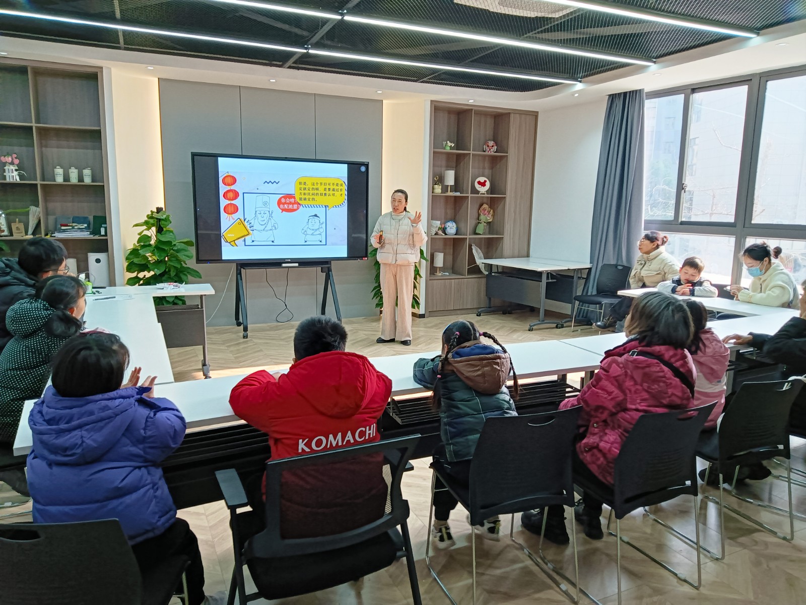 周日下午,天沁社区邻里中心二楼不时传来一阵阵欢声笑语,庄桥街道天沁社区正在开展暖冬亲子阅读活动之“腊八不只有粥”。