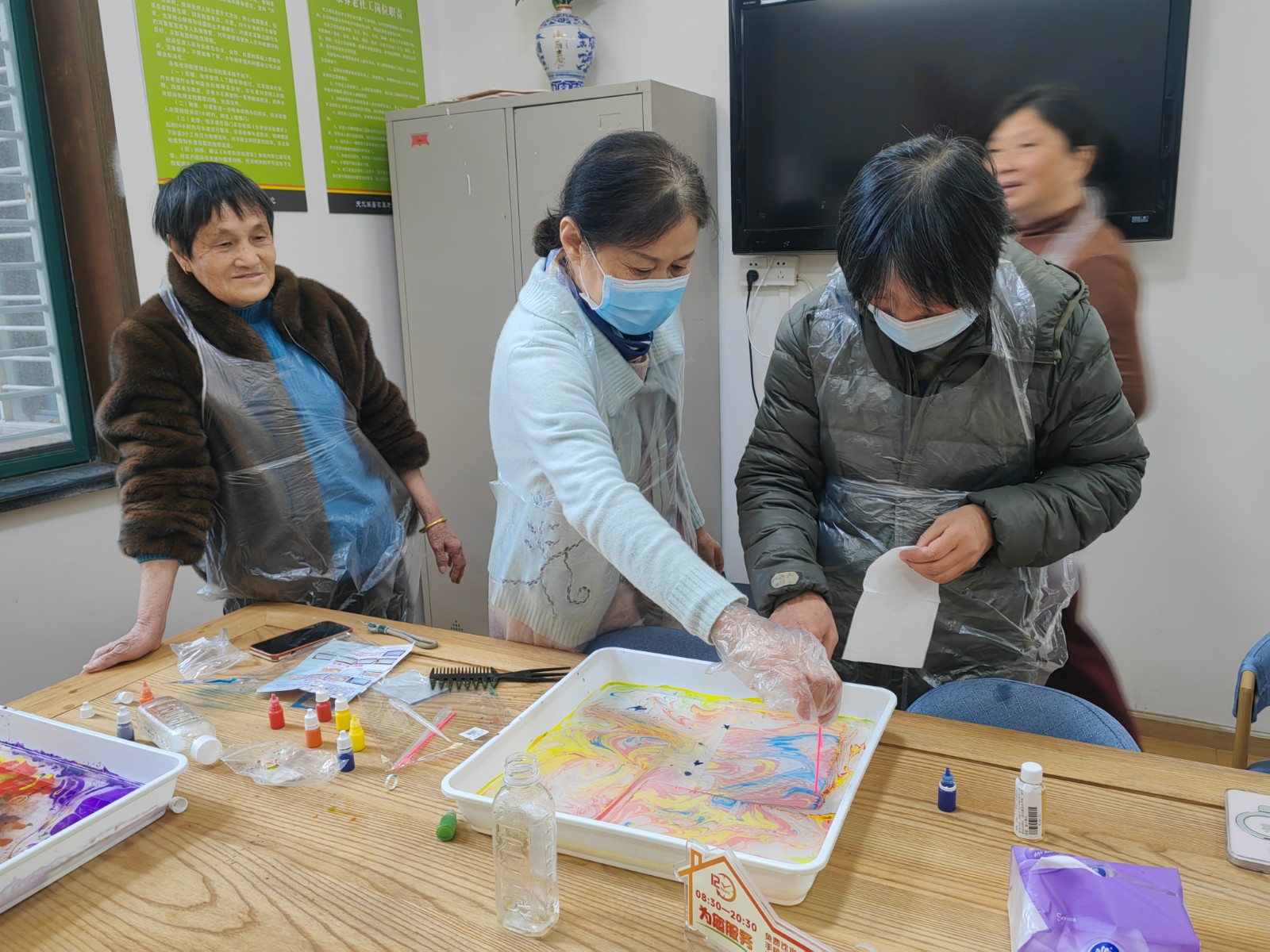 为丰富居民日常生活,天水阁居家养老服务中心特举办“巧手慧心 老有所乐”非遗水拓丝巾活动。