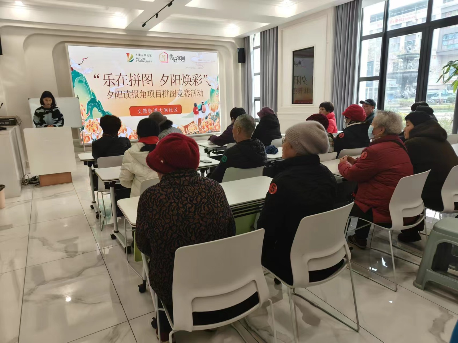 为了锻炼老年人动手动脑能力,培养老年人兴趣爱好,丰富社区文化生活。16日,大闸社区在邻里中心一楼举办了“乐在拼图 夕阳焕彩”活动。