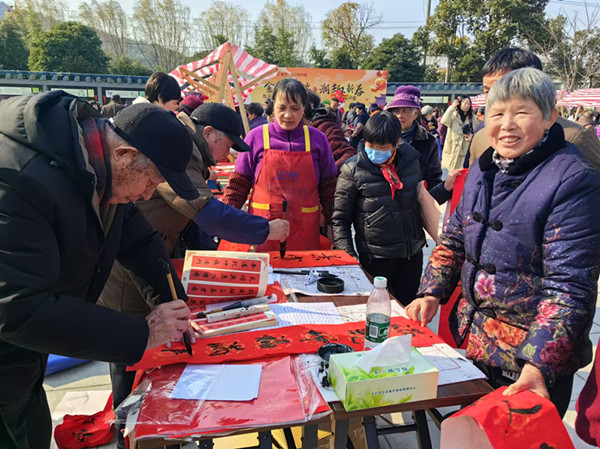 春节临近,年味渐浓,为营造喜庆祥和的节日氛围,1月12午,陈华浦社区联合书画协会开展写春联送春联活动,通过笔墨神韵将广大居民群众对生活的美好愿望变成喜庆的祝福送进千家万户。