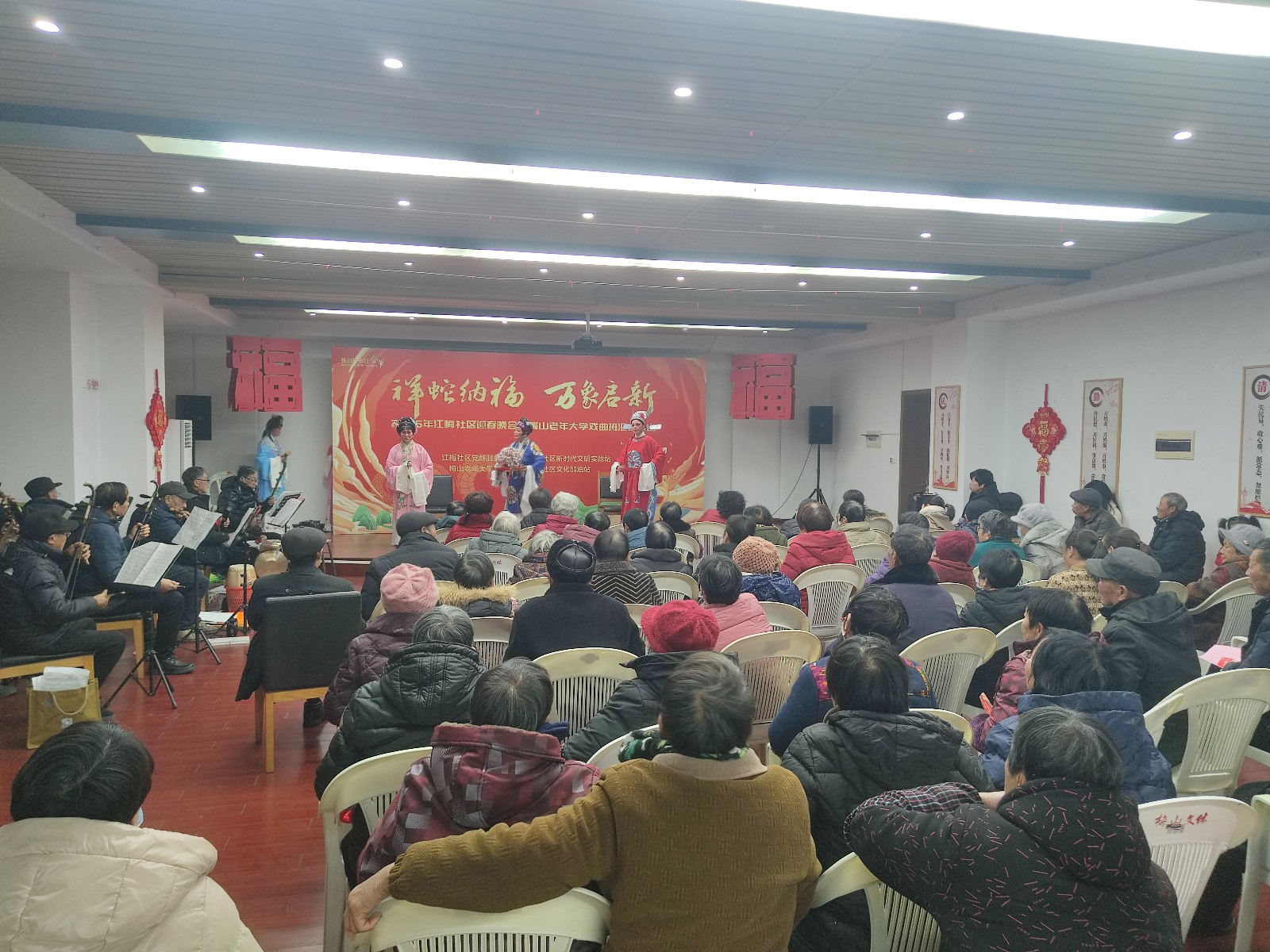 在2025年新春即将来临之际,为营造社区祥和欢快的节日氛围,为居民送上新春祝福,让每个小区居民感受“春晚”气氛,1月11日晚,梅山成校携手江梅社区举办“祥蛇纳福 万象启新”2025年迎春晚会,社区的网格员、居民、志愿者欢聚一堂,共享一场充满欢声笑语和节目纷呈的社区草根春晚,为2025年献上最好的祝福。