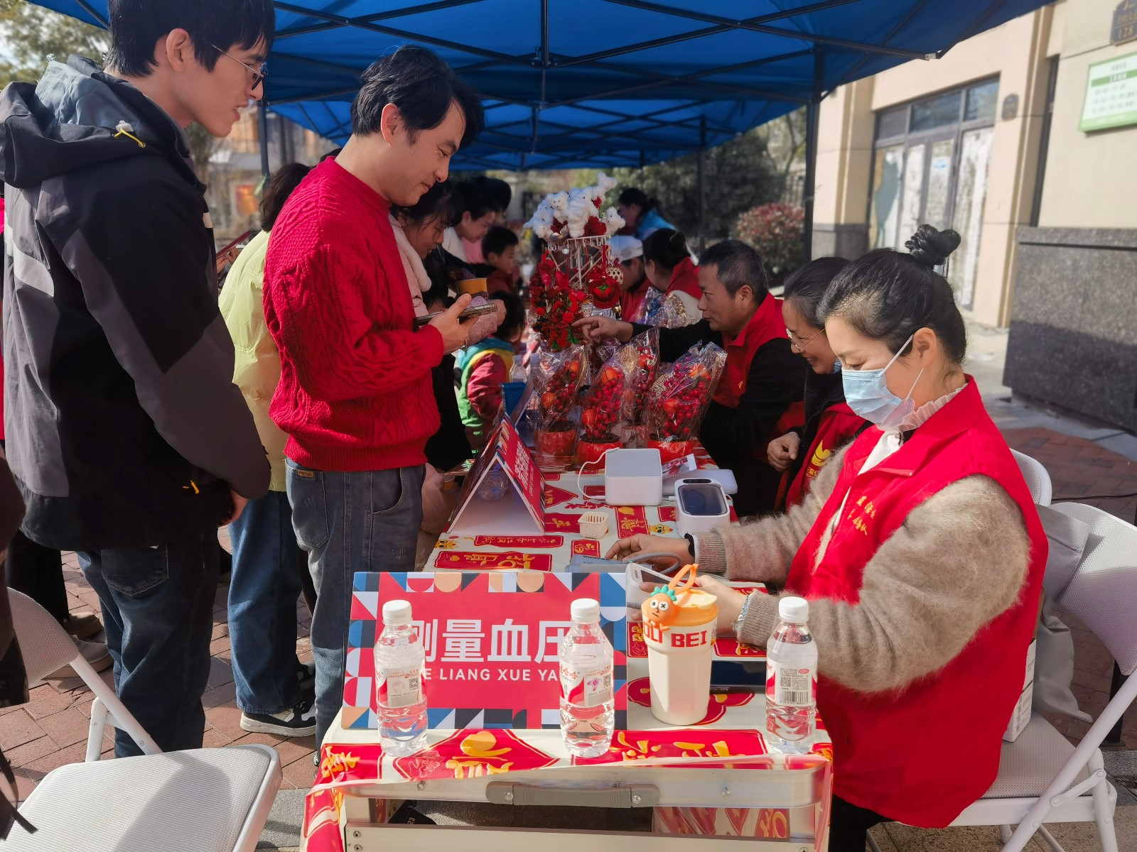 除了这几个很吃香的摊位外,还有爱心食坊、测量血压、垃圾分类等摊位也是人声鼎沸。此次新春公益集市还新增了一个打卡拍照点。打卡处有精心布置的蛇年背景墙,一旁还摆放着各种趣味十足的新年道具,可爱的蛇年印章、红彤彤的蛇年挂件等。居民们兴致勃勃地围过来,张大妈笑着说:“哎呀,这布置得太有年味儿啦,看着就喜庆!”大家挑好心仪道具,摆出欢乐姿势拍照。咔嚓一声,美好瞬间定格,志愿者迅速打印,不一会儿,热乎乎、带墨香的照片就送到了大家手中,居民们满心欢喜地准备珍藏,让这份集市上的欢乐与温馨永久定格。