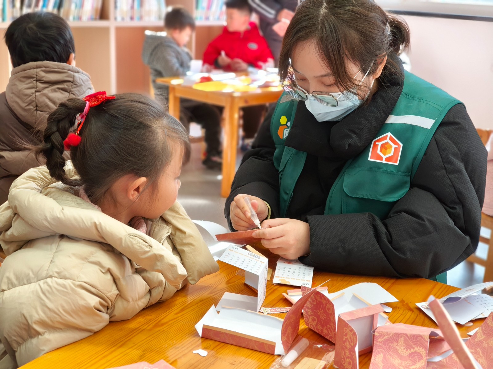 1月16日上午,俞范社区关工委、俞范社区妇联携手爱德堡幼儿园,在南岚湾城市书房开展了新年台历手工DIY活动。