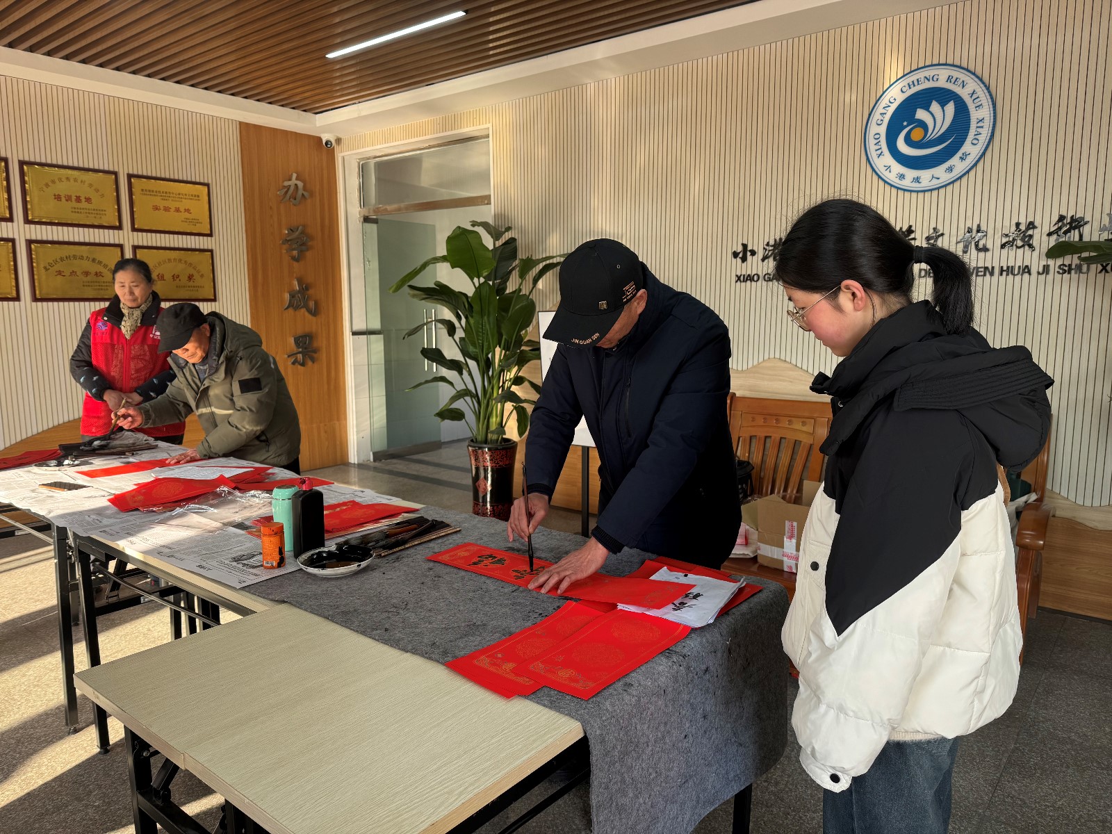 春节将至,为弘扬中华优秀传统文化,营造浓厚的睦邻友好氛围,增进邻里之间的感情,青墩社区党群服务中心在小港成人学校举办了一场别开生面的“翰墨飘香迎新春,妙笔挥毫送祝福”活动,吸引了众多社区居民参与。