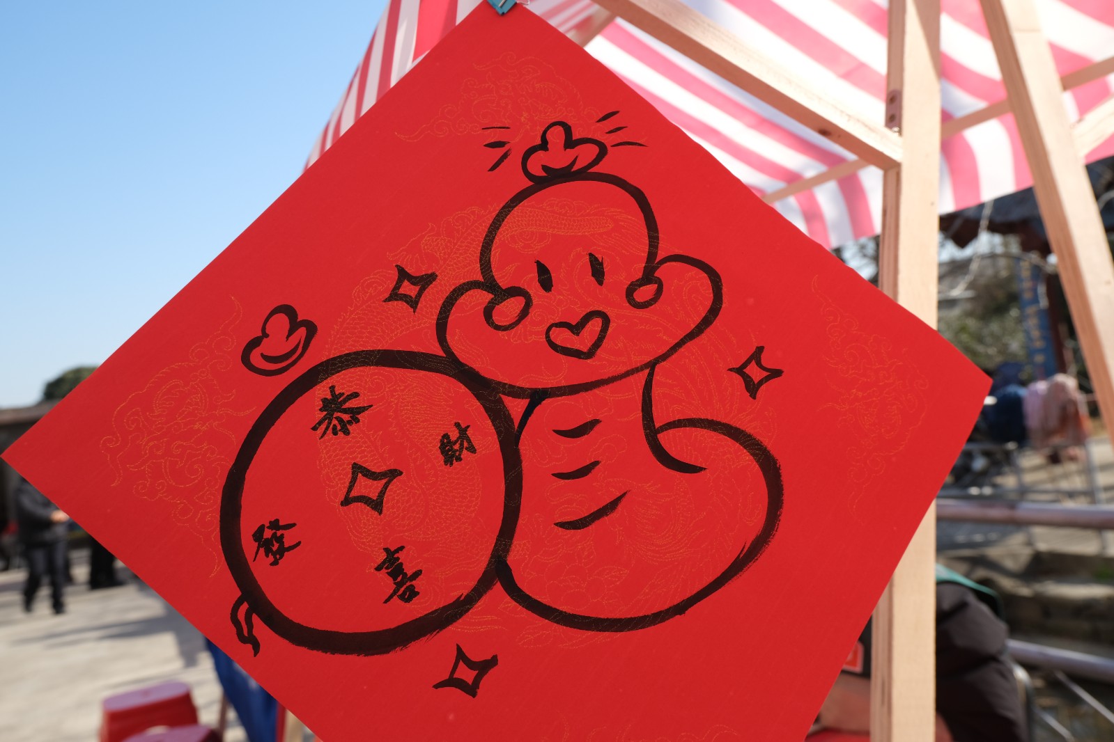 “看这红红火火的‘福’字,希望新一年顺顺利利。”众多摊位里,“送福铺”格外热闹。网格员小诸饱蘸浓墨,行云流水,为居民