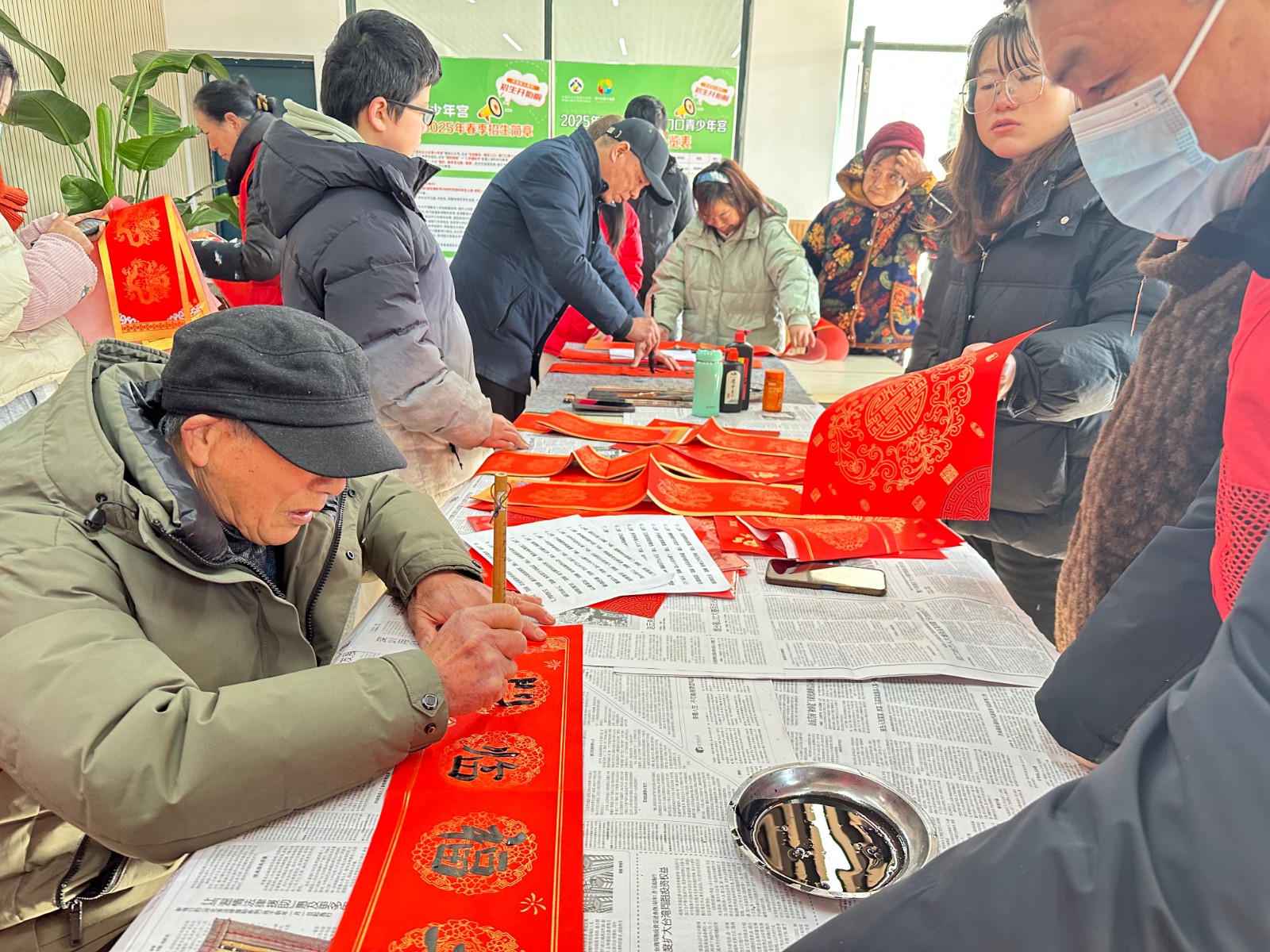 活动现场,热闹非凡。书画社的老师们与书法爱好者们齐聚一堂,挥毫泼墨,在一张张红彤彤的纸上写下对新年的美好期许。楷书的端庄大气、行书的行云流水、隶书的古朴典雅……各种书体争奇斗艳,笔锋婉转间,一个个字跃然纸上,洋溢着浓浓的年味。