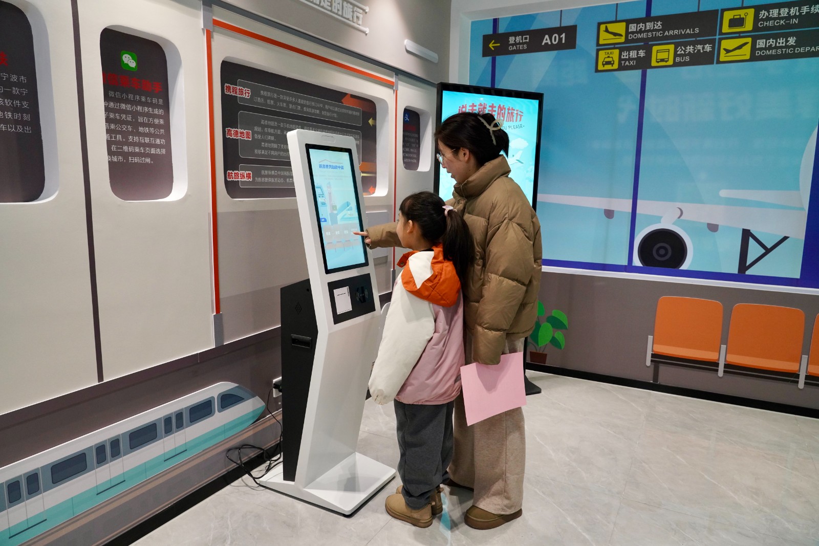 在数智生活馆,祖孙携手感受现代科技为生活带来的巨变。小朋友们凭借敏锐的学习能力,迅速掌握了线上打车、点餐、购买火车票和飞机票等操作技巧,还热情满满地教长辈如何使用。道具模拟心脏按压、VR 体验伤口包扎等项目,让小朋友们在趣味互动中,安全救护能力得到大大提升。