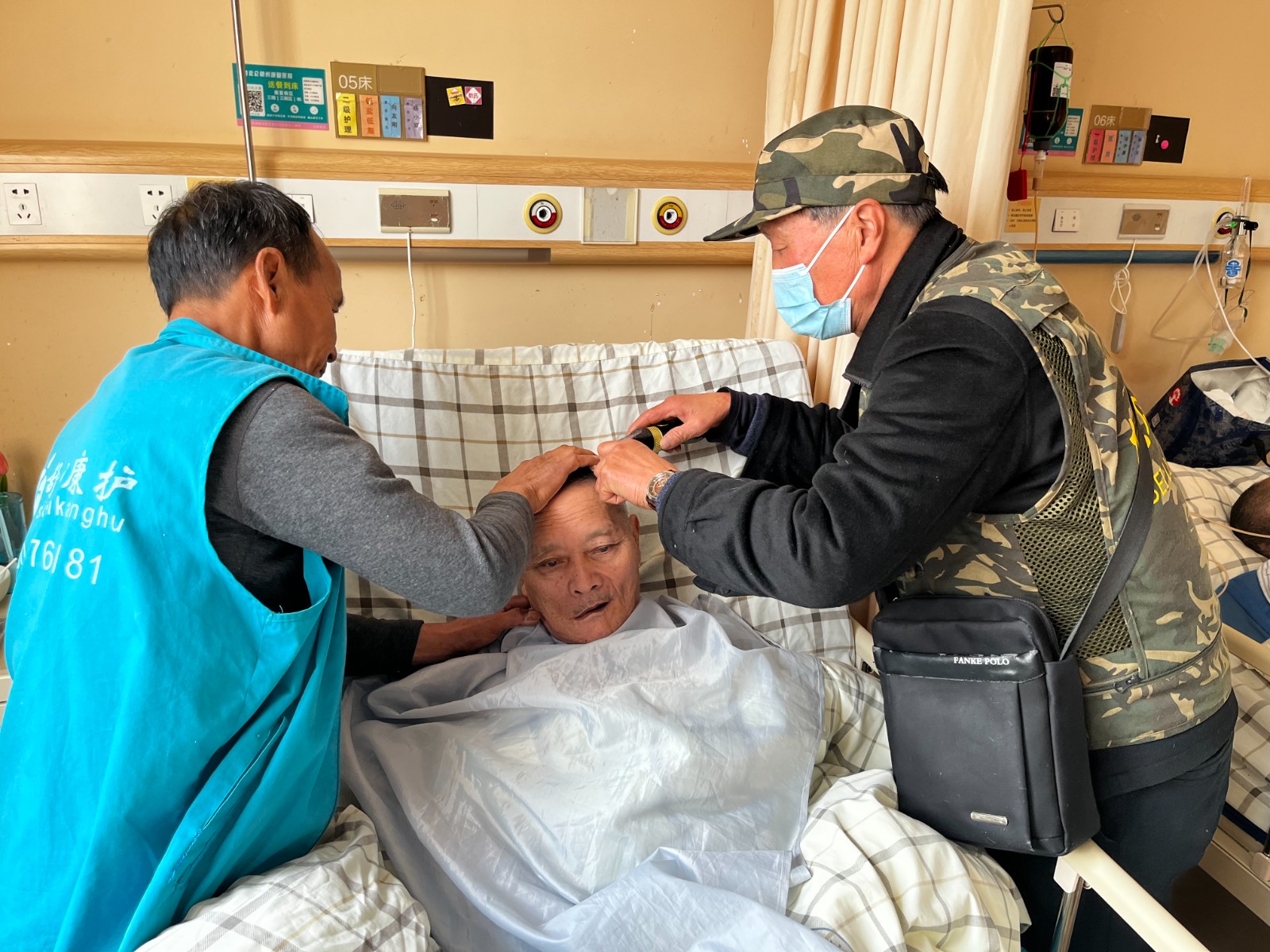 1 20 日下午,“老兵bangbang”志愿者们带着专业的理发工具,准时来到这里。他们的身影,对于医院里的老人们来说,就像熟悉的老友来访。志愿者们分工明确,有的耐心地与老人沟通想要的发型,有的则熟练地拿起剪刀,开始为老人修剪头发。在理发过程中,他们还不时与老人聊天,逗得老人们笑声连连。一位老人感慨地说:“这些老兵一来,整个病房都热闹起来了,心情也跟着好了。”