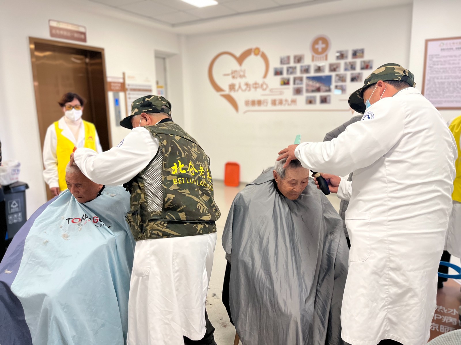而在 1 17 日,“老兵bangbang”志愿者们的足迹则留在了北仑区中心福利院,为里面的120 多位老人服务,其中年纪最大的已达 102 岁高龄。当志愿者们走进福利院大厅时,老人们纷纷投来期待的目光。老兵们迅速行动起来,摆好工具,为老人们依次理发。在理发的过程中,老兵们无微不至地照顾着每一位老人的感受,动作轻柔而娴熟。对于一些行动不便的老人,他们还主动走到老人房间,为其提供上门服务。