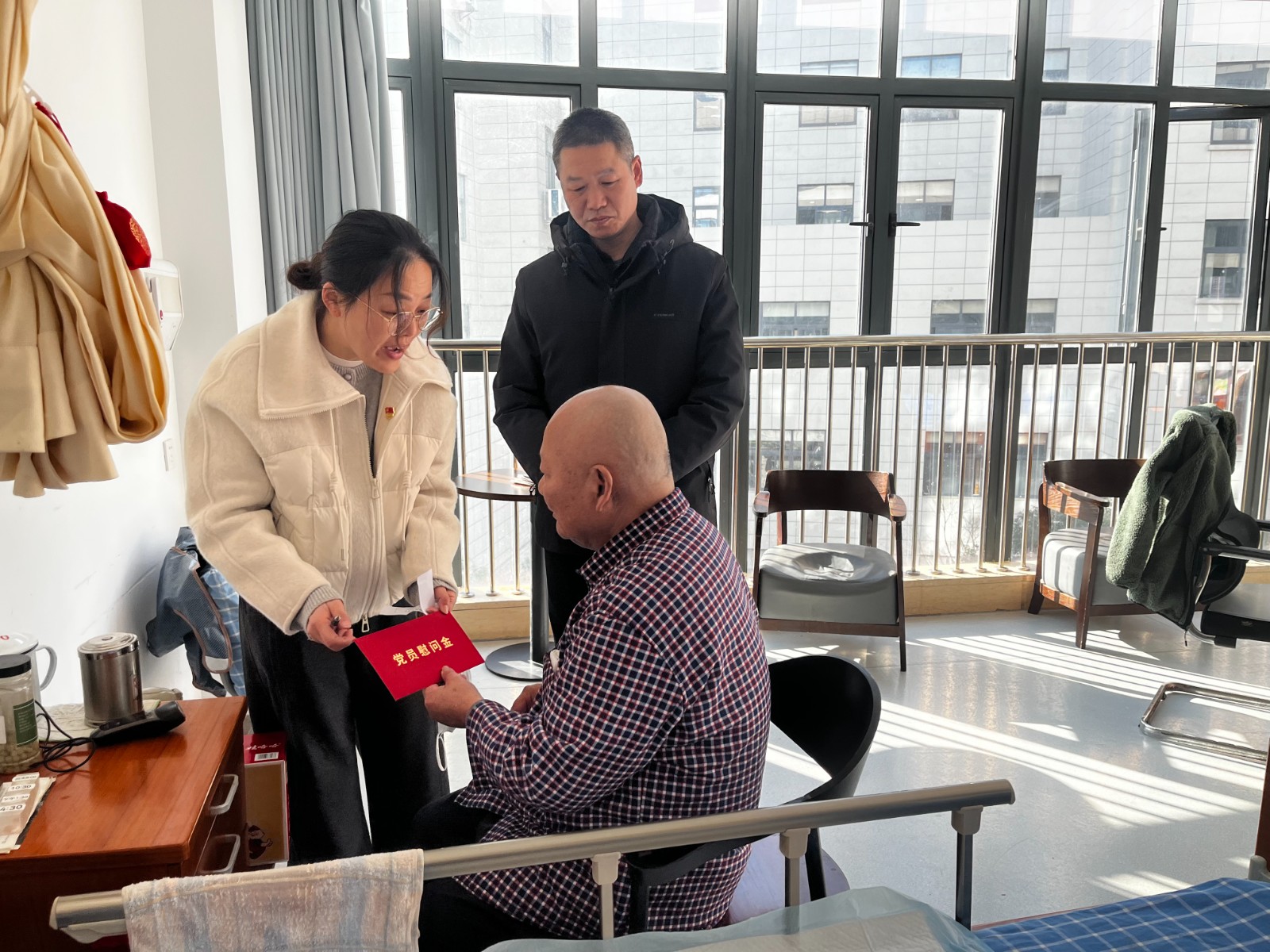 首先,党委书记王琼芳来到宗瑞医院的康养楼,探望了正在此休养的困难党员干根初。王琼芳书记细心询问了干根初的身体康复进展及日常生活中所遇到的难题,鼓励他保持乐观向上的生活态度,有任何困难都应及时向社区反映,坚信未来的日子将更加充满阳光与希望。