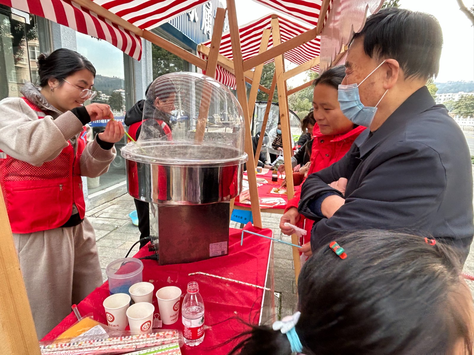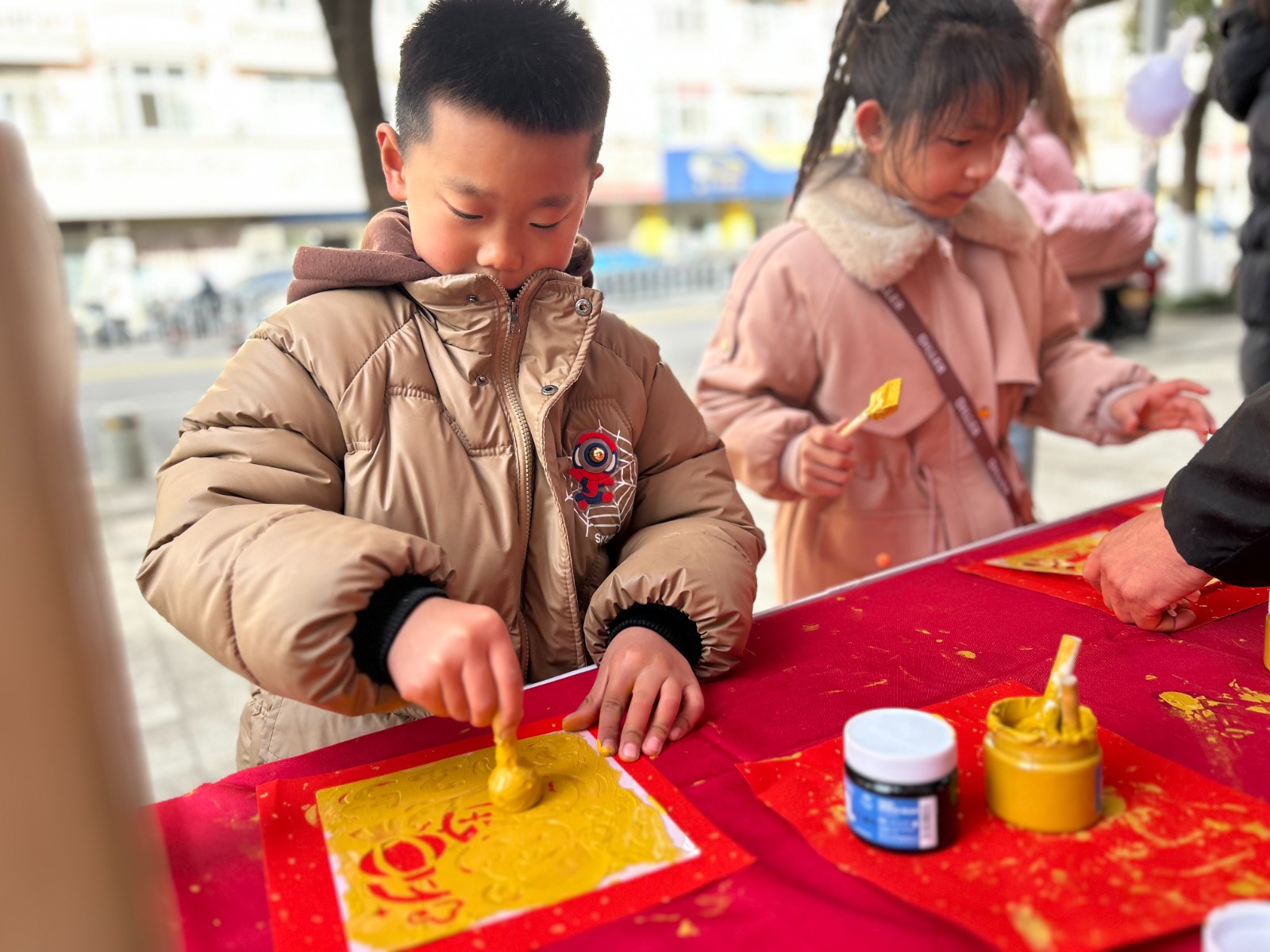 丰富多彩的便民服务和非遗体验让现场更热闹。在爱心理发摊位、磨刀、义诊等摊位也深受喜爱。值得一提的是,棉花糖以及非遗拓印作为新春特色吸引了孩子们的围观。“我要一个粉色的、我要一个蓝色的!”小朋友举着棉花糖开心地说,“这个棉花糖太好吃啦!”在志愿者的指导下,孩子们亲手体验传统拓印技艺,感受非遗魅力。此外,现场还设置了反诈、反邪、禁毒等平安宣传摊位,提醒居民安全过大年。