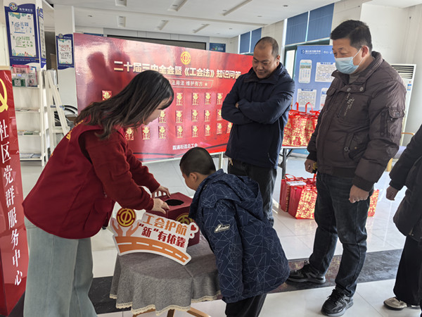 1月21日,为深入学习贯彻党的二十届三中全会会议精神,并普及《中华人民共和国工会法》相关知识,陈华浦社区组织了一场别开生面的二十届三中全会暨《工会法》知识问答活动。此次活动旨在通过问答形式,加深广大职工对党的最新政策的理解和认识,同时提升对《工会法》的认知水平,进一步发挥工会在维护职工权益、促进经济社会发展中的重要作用。