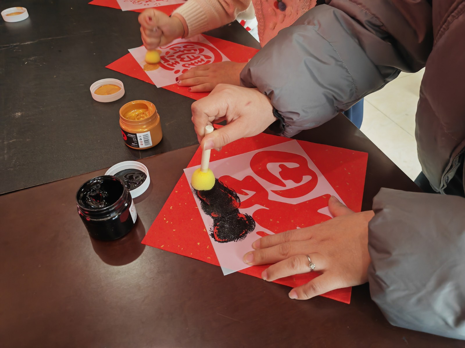活动开始前,志愿者们首先向大家详细介绍了拓印福字的制作流程及注意事项。从选材、备墨、定位到拓印,每一步都进行了详细的讲解和示范。随后,孩子们兴致勃勃地拿起工具,开始了他们的艺术创作,他们小心翼翼地将拓片覆盖在纸张上,轻轻地蘸取颜料,用拓印工具慢慢地按压,亲手拓印出寓意吉祥的福字,在拓印过程中,大家互相交流、切磋技艺,气氛热烈而融洽。每一次成功的拓印,都伴随着青少年的欢呼,仿佛他们亲手触摸到了历史的脉搏。