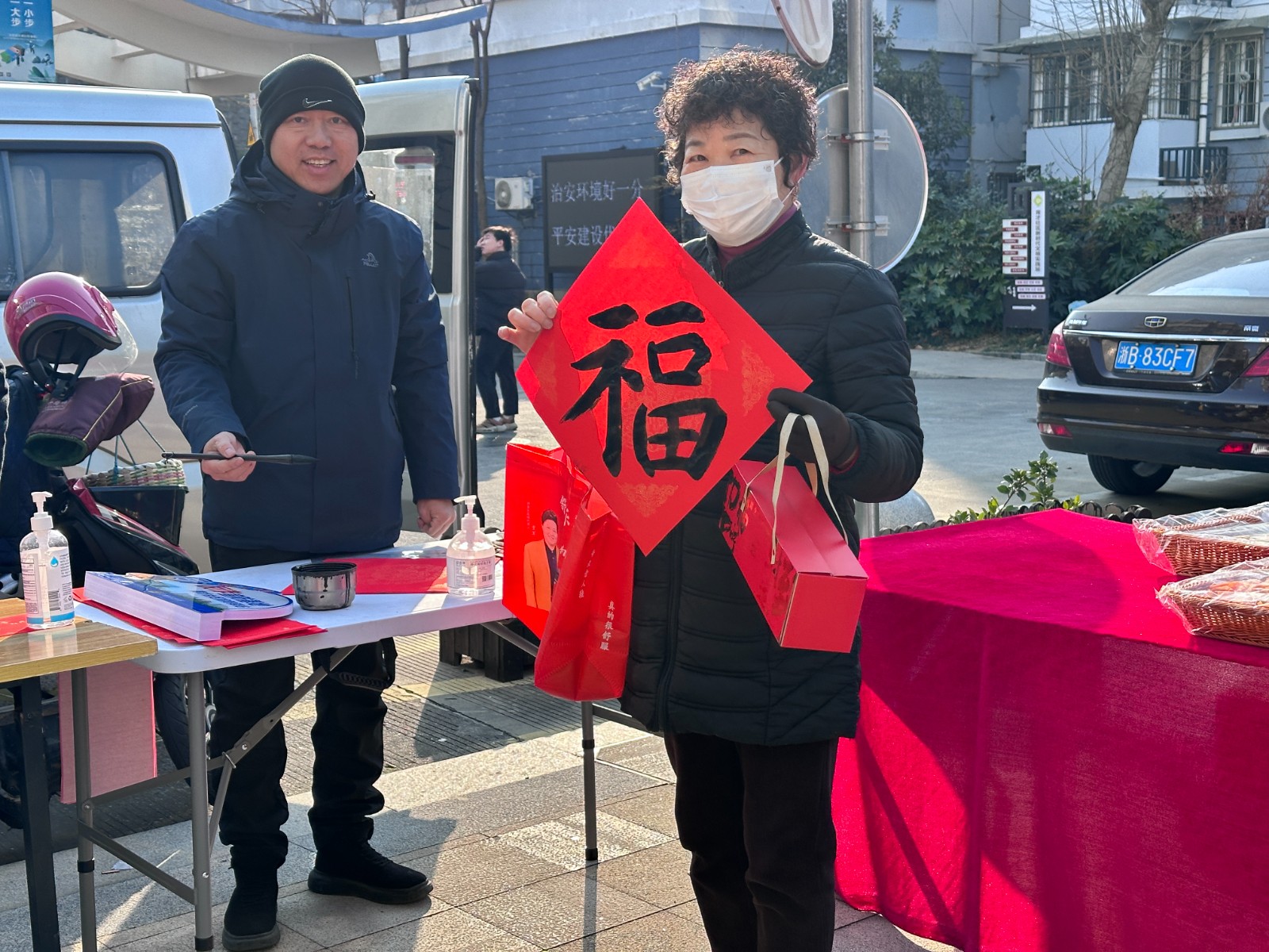 活动现场,网格员和志愿者们设立了多个服务摊位,便民服务区有磨刀、理发、配钥匙,健康义诊区有量血压、血糖,口腔义诊,最具年味的当属送春联区,书法老师挥毫泼墨,笔走龙蛇,一幅幅饱含新春祝福的春联和福字跃纸而上,居民们手捧福字,脸上洋溢着幸福的笑容。