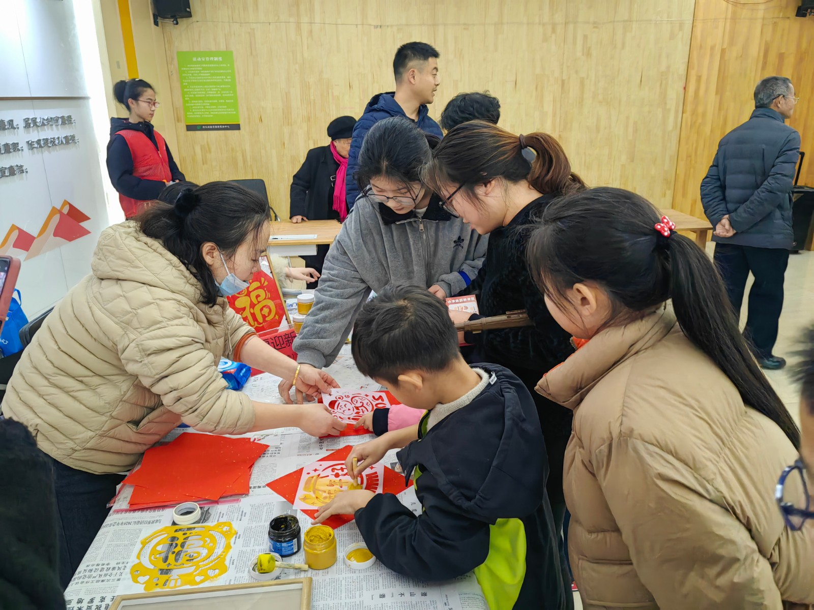 “蛇年开运·拓福迎新”、“瑞蛇送福·非遗剪纸”区域同样人气爆棚。居民在纸上认真拓印“福”字,剪出蛇年新春窗花,表达对新春的美好祝愿。