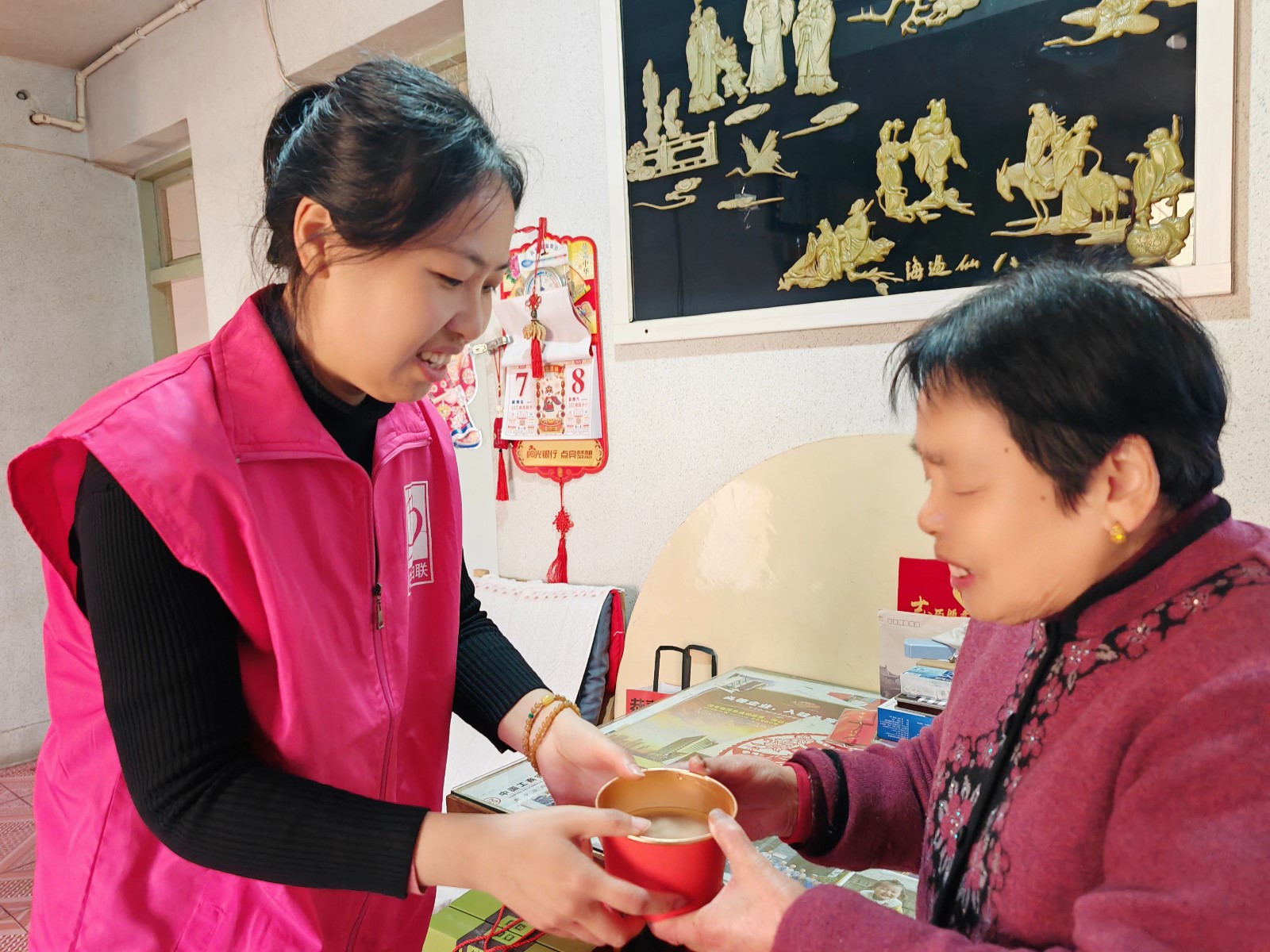 大家品尝完后,开始分组分享自己的劳动成果,社区工作人员和志愿者将一碗碗彩色汤圆送到高龄老人、老党员、老兵手中,让他们能感受到节日的温馨和社区的关爱。“小汤圆五颜六色的,看着就很有食欲,也很喜庆,社区有心了,谢谢你们。”沃大爷笑眯眯的表示,甜甜糯糯的汤圆传递着幸福,也传递着社区对老人们的深情厚谊。