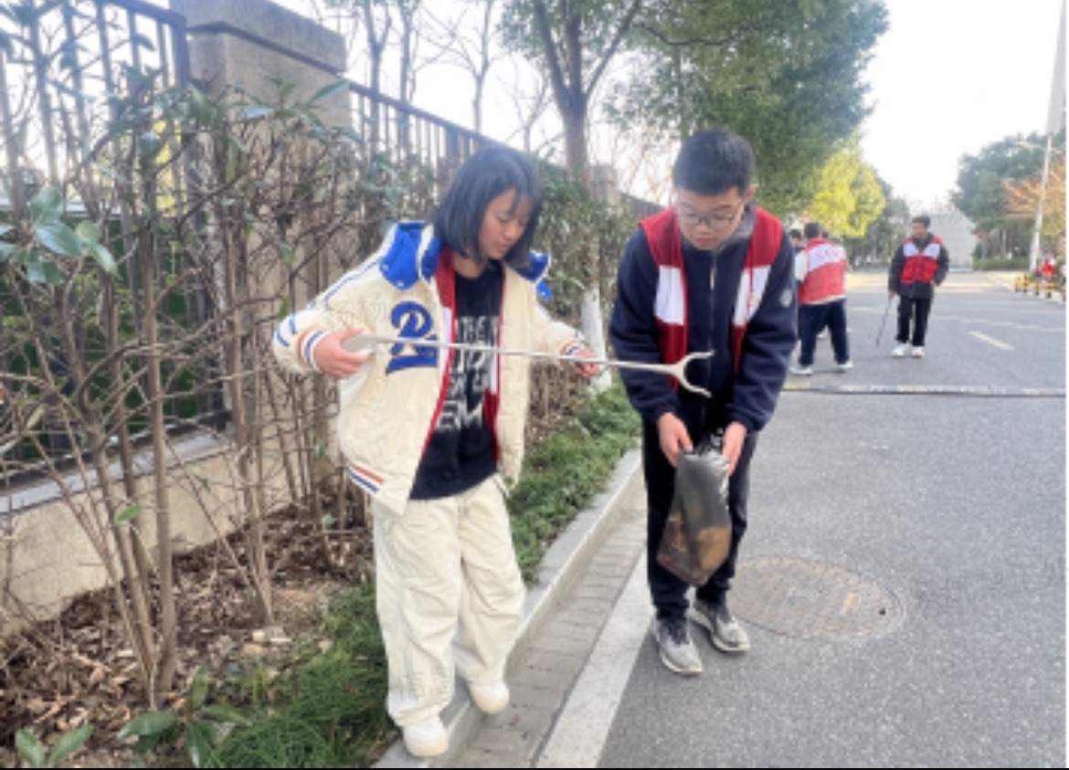活动当天,青少年志愿者们早早集合,网格员把志愿者服装交给他们,身着统一服装,手持清洁工具,热情高涨。他们分工明确,有的负责清扫街道上的垃圾和落叶,有的专注于清理墙壁上的小广告,还有的对社区公共设施进行擦拭。尽管天气寒冷,但大家干劲十足,不放过任何一个卫生死角。