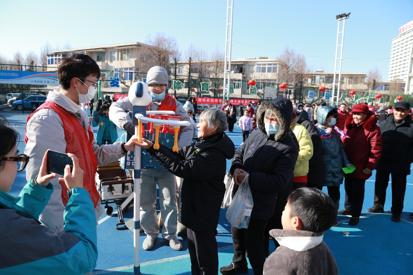 活动在热闹的欢乐腰鼓行中拉开序幕,随着主持人宣布游园活动正式开始,居民们纷纷涌入各个活动区域,开启了一场充满趣味的元宵游园之旅。网格员分别精心设置了套圈游戏、投壶游戏、赶鸡入笼、垃圾分类猜猜、义诊、反应力测试等,居民们兴致勃勃地排队参与打卡盖章。现场还特别设置了汤圆品尝区和包汤圆体验区,带网格员的示范下,大家纷纷动手包汤圆,品尝美味的汤圆!大家欢声笑语不断,共同感受着节日的温馨与欢乐。在义诊和反应力测试摊位,医生志愿者们免费为社区居民测量血压、解读体检报告等,反应力测试帮助老人认识自己的反应能力,提前预防老年痴呆症等,向社区居民开展健康知识普及,助力健康镇海建设。