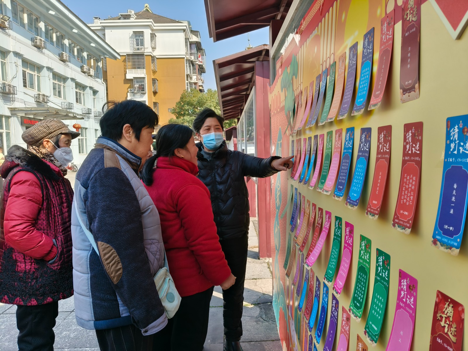 本次元宵游园会设置了齐乐“笼笼”、投壶纳财、趣猜灯谜等多个环节,老少皆宜的趣味游戏项目引人驻足。居民们站在投掷点,全神贯注的瞄准“财运桶”,箭矢入桶的瞬间,欢呼声与掌声此起彼伏,射中者更是满心欢喜,将财运、福气带回家。“刀出鞘”、“差一点六斤”、“官清书吏瘦”……一排排整齐的谜面早已准备好,包含字谜、传统民俗文化、党建、廉政知识等内容,既有趣味性,又富有知识性。居民们三五成群,相互讨论,现场气氛热烈而欢乐。