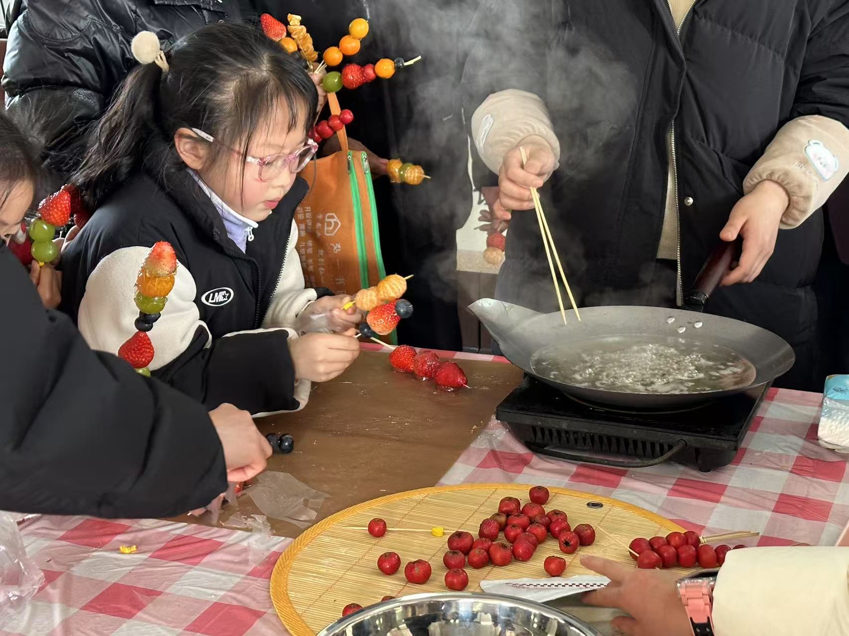 “以前都是买着吃,今天自己动手做,感觉特别有意思!”社区居民李阿姨一边将串好的水果裹上糖衣,一边开心地说道。小朋友们也纷纷化身“小小甜品师”,在家长的帮助下,制作出属于自己的“专属”糖葫芦,脸上洋溢着自豪的笑容。