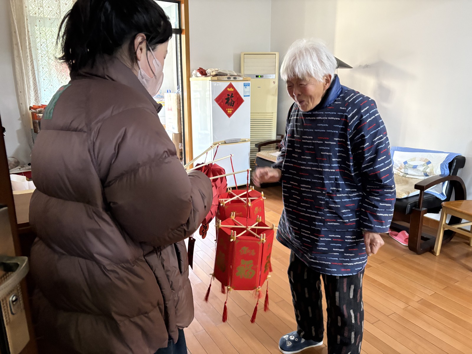 网格员暖心送手作灯笼,高龄老人感受别样温暖