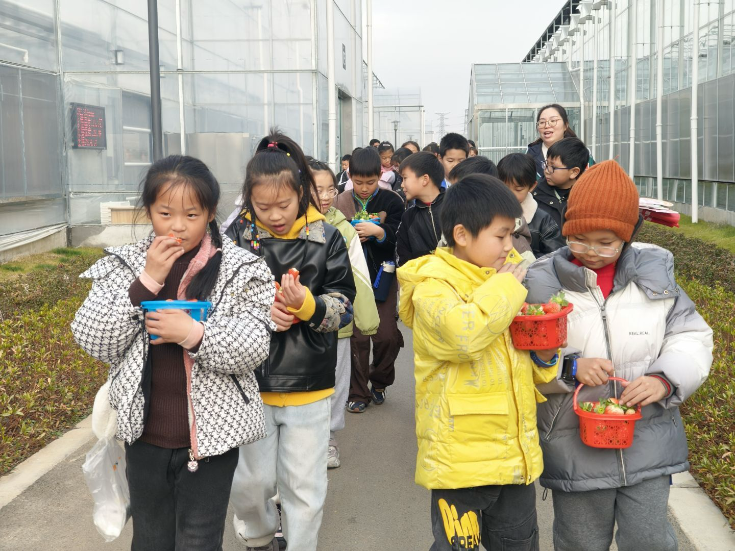 随后,一行人前往时新生态农场,走进现代化草莓种植大棚,一股清新的果香扑鼻而来,让人瞬间陶醉。孩子们在基地老师和“五老”志愿者的引导下,兴奋地穿梭于绿意盎然的草莓行间,亲手采摘着一颗颗红彤彤的大草莓。他们小心翼翼地捧着自己的“战利品”,脸上洋溢着满足与喜悦的笑容,兴奋地与伙伴们分享着采摘的乐趣和成果。