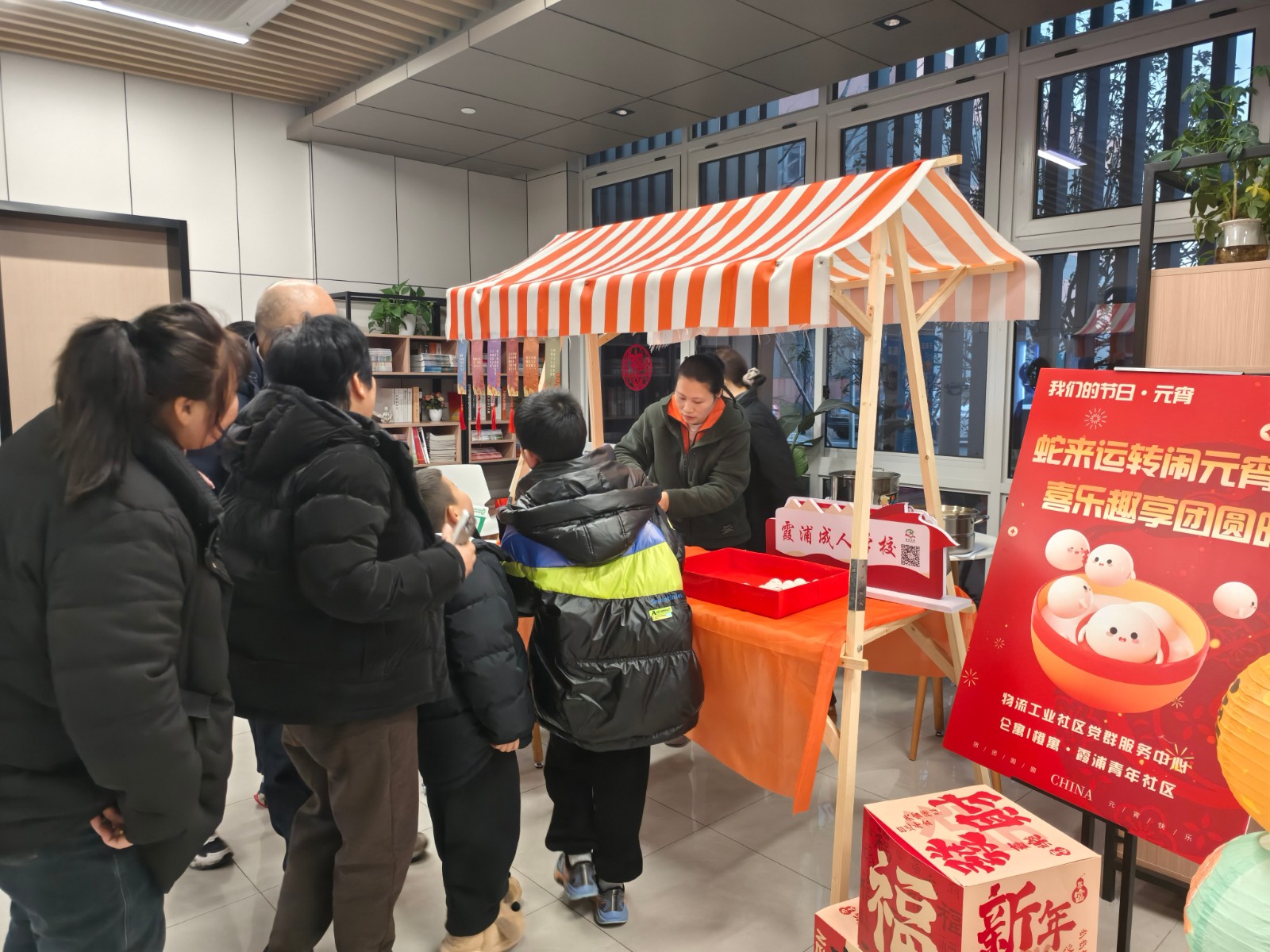 2月11日晚物流工业社区党群服务中心联合霞浦成人学校在橙寓·霞浦青年开展了一场别开生面的“蛇来运转闹元宵”活动,吸引了近六十余名企业职工、集卡司机踊跃参与。