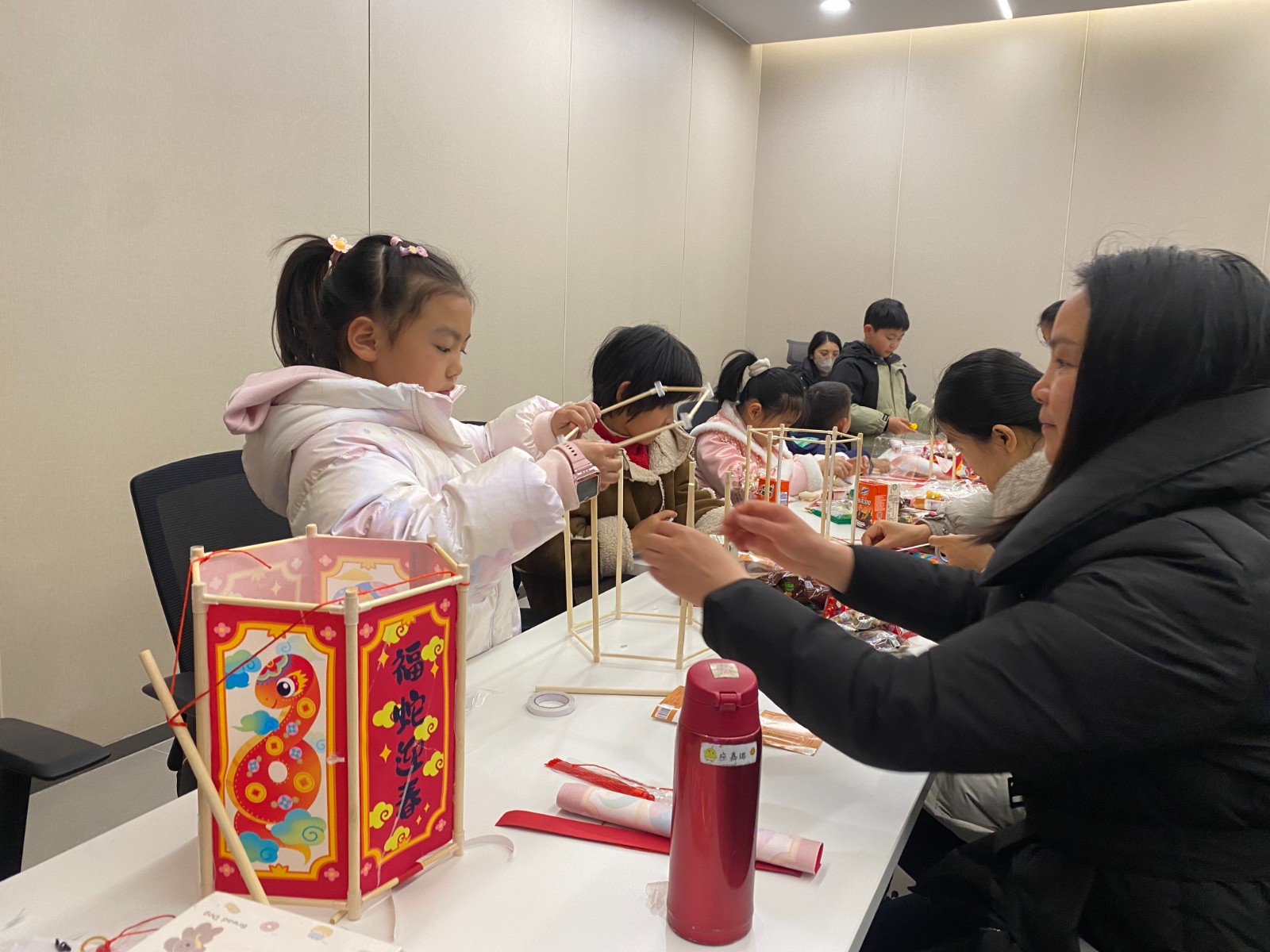 活动当天,在志愿者的指导下,家长与孩子们共同学习非遗花灯的制作技艺。从骨架搭建到彩纸粘贴,从绘制图案到悬挂流苏,一盏盏象征团圆与希望的花灯在亲子协作中逐渐成型。社区居民李女士感叹:“和孩子一起动手制作花灯,既让孩子了解了传统文化,也让我们感受到社区大家庭的温暖。”