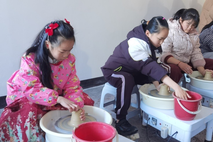 施尚剑老师向大家介绍了青瓷制作的技艺及步骤,随后带领大家一步步体验青瓷从拉坯到烧制前的所有环节。在亲手拉坯的过程中,青少年们不仅感受到了青瓷制作的乐趣,也深刻体会到了青瓷制作工艺的精湛和独特。活动间隙,村工作人员组织青少年们观看了青瓷文化主题影视片《秘色之城》,帮助大家进一步了解青瓷的“前世今生