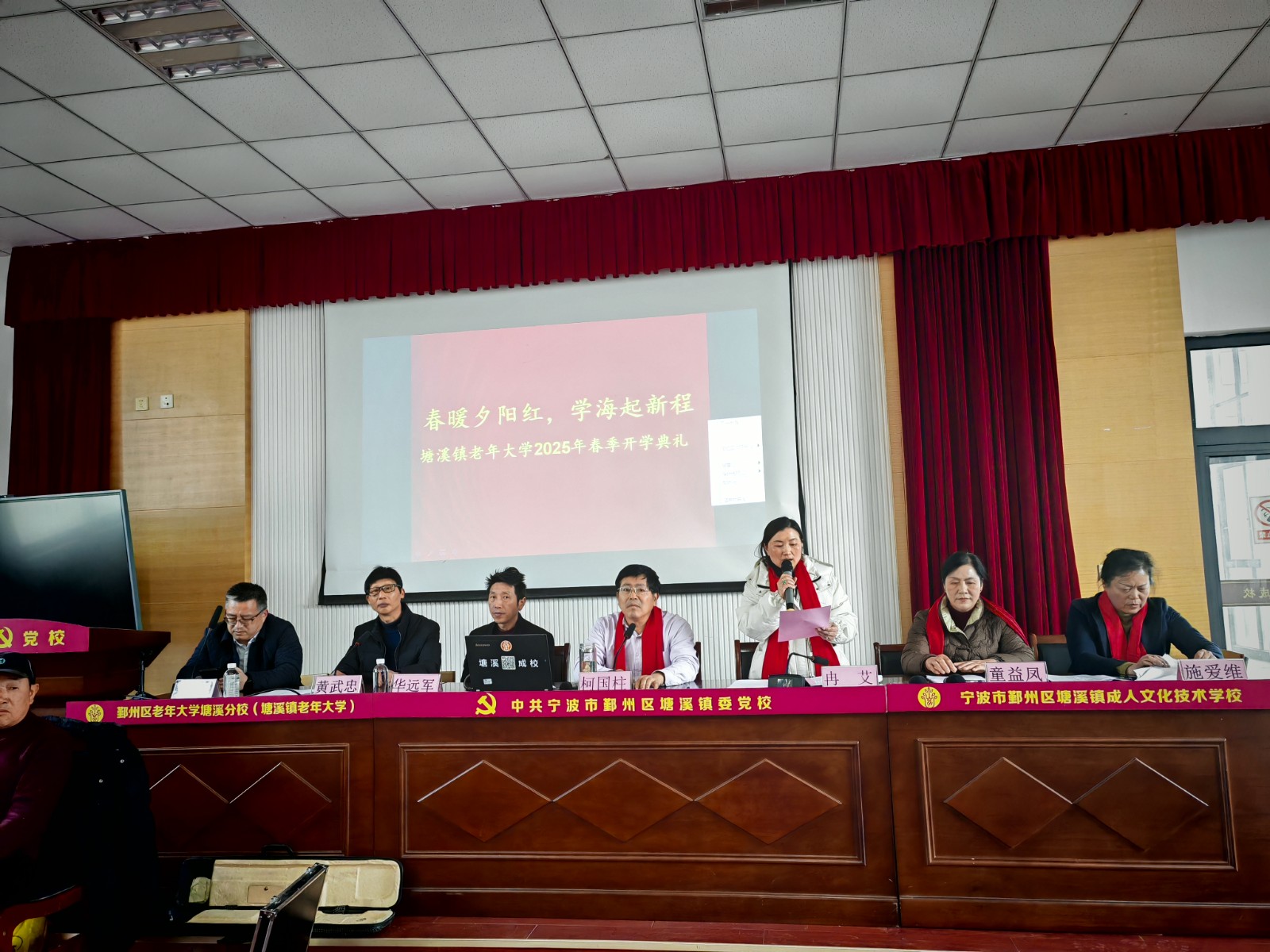 2025年2月18日下午,塘溪镇老年大学以“春暖夕阳红,学海启新程”为主题,在二楼阶梯教室隆重举办2025年春季学期开学典礼。柯国柱校长、校务会成员、教师、各班班长及全体新老学员齐聚一堂,共同开启新学期的学习旅程。活动通过温馨的仪式、精彩的文艺展演和有序的报名流程,展现了老年大学“以人为本”的办学理念,为学员们营造了积极向上的学习氛围。