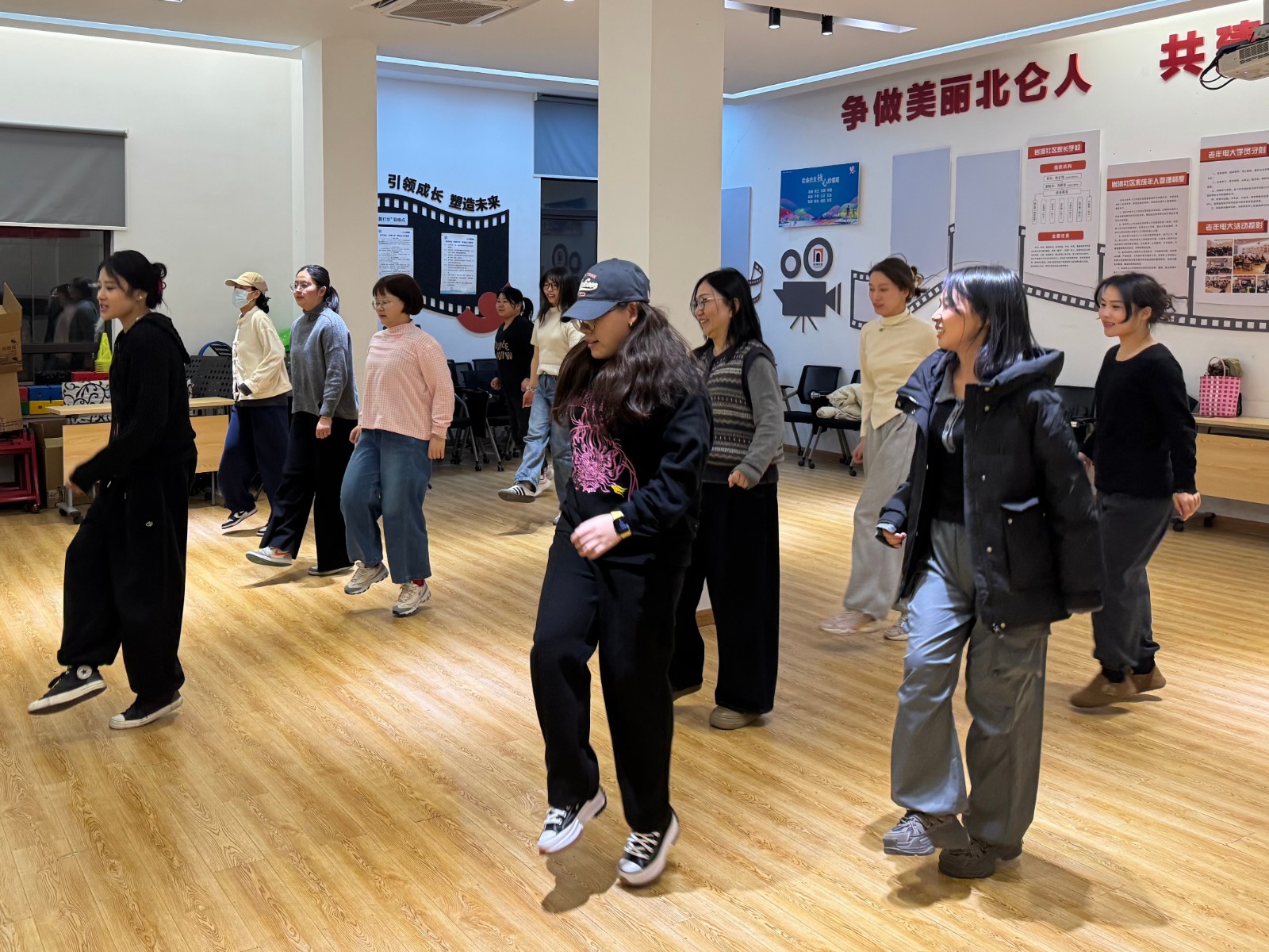 来自北仑区青年夜校的KK老师,以“零基础也能跳出风采”的教学理念开启了爵士舞教学的第一课。“很多学员可能是第一次接触爵士舞,我们要先打破身体的拘束感,要自信起来!”KK老师带领着学员们进行了系统的身体激活训练,从头部、肩部到腰胯的分离练习……KK老师边说边示范,大家跟随着老师的节奏,一起做起了波浪形身体传导动作,有效缓解了零基础学员的紧张情绪,大家配合呼吸节奏逐渐进入状态。