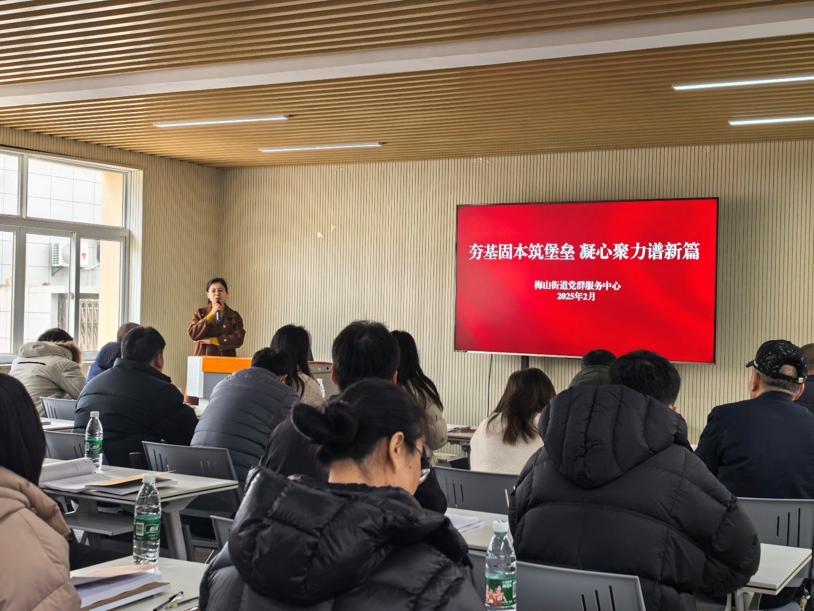 为进一步提升街道基层党组织党务工作者的业务能力和综合素质,加强基层党组织的战斗堡垒作用,2025年2月 21日,梅山街道党群服务中心开展“夯基固本筑堡垒 凝心聚力谱新篇”基层党组织党务工作者培训班,以专题讲座、交流研讨等形式,对党务工作者进行全覆盖培训,来自街道各村(社)、机关及企事业单位的60余名党务工作者参加了此次培训。
