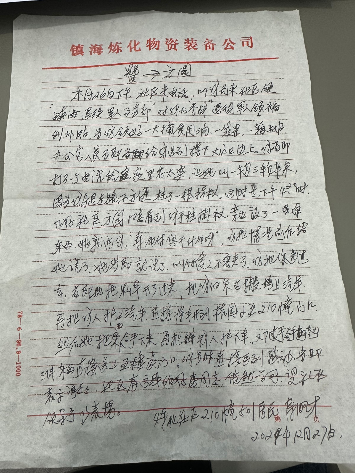 “炼化社区有这样的好同志,我很是感动。很多的帮助看似小事,但却帮了大忙……”近日,炼化社区工作人员方圆收到了一份感谢信,纸短情长,这些温情话语的背后,是一段情意浓浓的暖心故事。