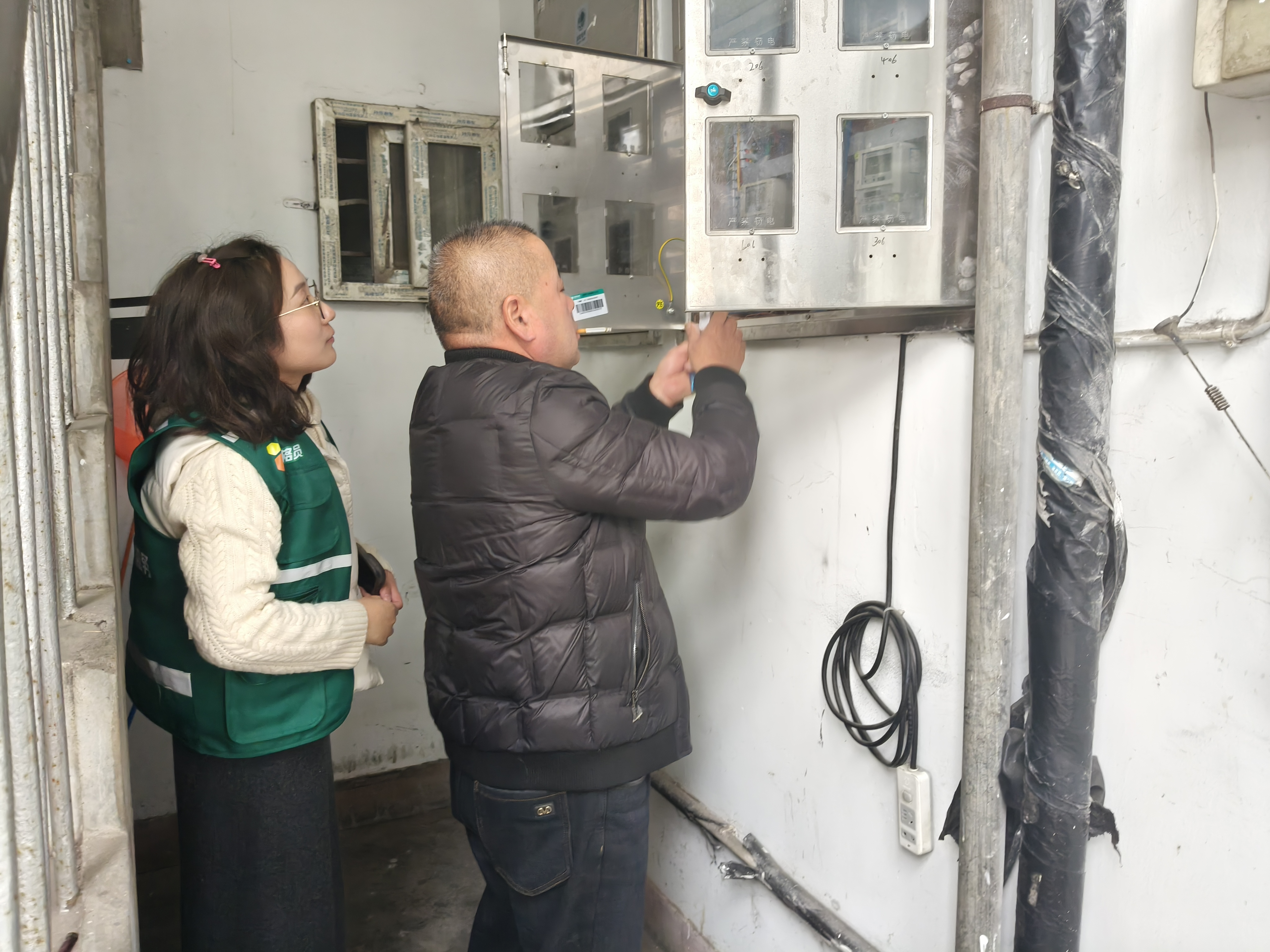 接过钥匙,也接过一份沉甸甸的责任。网格员杨艳艳深知车库没电对居民生活的影响,必须尽快找到原因,恢复车库供电,便第一时间联系供电所,请了专业电工师傅查看线路,经过一番仔细的排查,终于找到问题的症结所在——小区改造遗留问题,新建电缆桥架中一根关键线路没有接上,正是这小小的疏忽,导致车库供电中断。然而,摆在面前的是一个棘手的难题,电缆桥架里密密麻麻的电线错综复杂,供电所师傅也无从下手,只能让当年负责小区改造的施工方前来检修,但小区改造工程已结束近3年,想要解决问题并不容易,网格员杨艳艳辗转联系上当年的施工方,并详细阐述了居民的困境和线路的问题,施工方得知实际情况表示会全力配合解决问题,迅速联系当年参与改造工程的电工师傅赶赴现场,经过施工人员数小时的努力维修,随着“啪”一声清脆的声响,车库里的灯瞬间亮起,网格员“心里的石头”也终于落下。