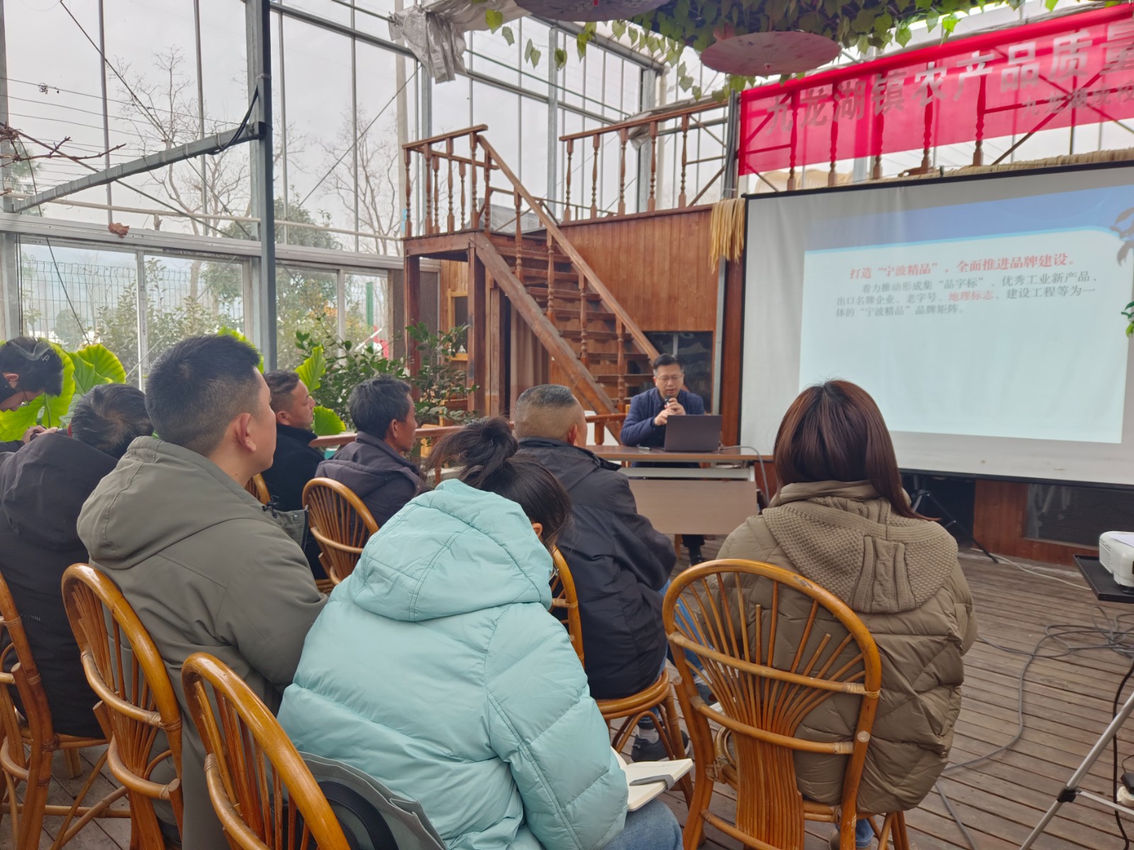 黄迪老师就"镇蜜"品牌使用与推广进行了专题讲解,详细介绍了"镇蜜"品牌的内涵、使用规范以及推广策略,鼓励农户积极参与品牌建设,共同打造九龙湖镇优质农产品品牌形象。