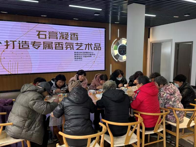 螺钿胸针制作培训和彩绘石膏香薰DIY,这些创意手作与艺术教育融合,不但打造了社区老年教育新场景,也让老年人感受到了“老有所学、老有所乐”的幸福氛围。
