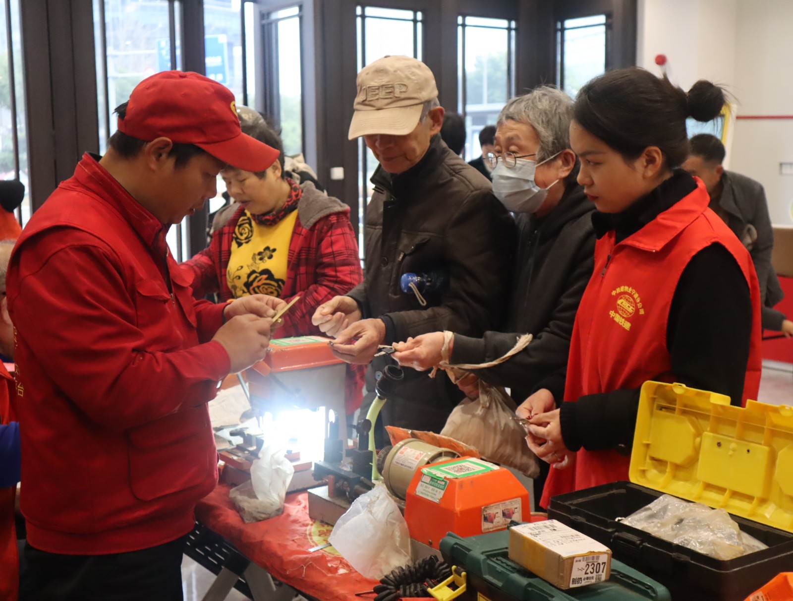 2025年3月3日上午,甬江街道万象社区、中铁建物业和新日月居家养老第三方共同打造的“幸福满湾“驿站又再次开放了暖心服务,现场设置了理发、修鞋、 修伞、 磨刀、缝纫、小家电维修等便民服务项目,同时还有姚江社区卫生服务中心带来的中医,全科,疫苗咨询,量血压,测骨密度等。