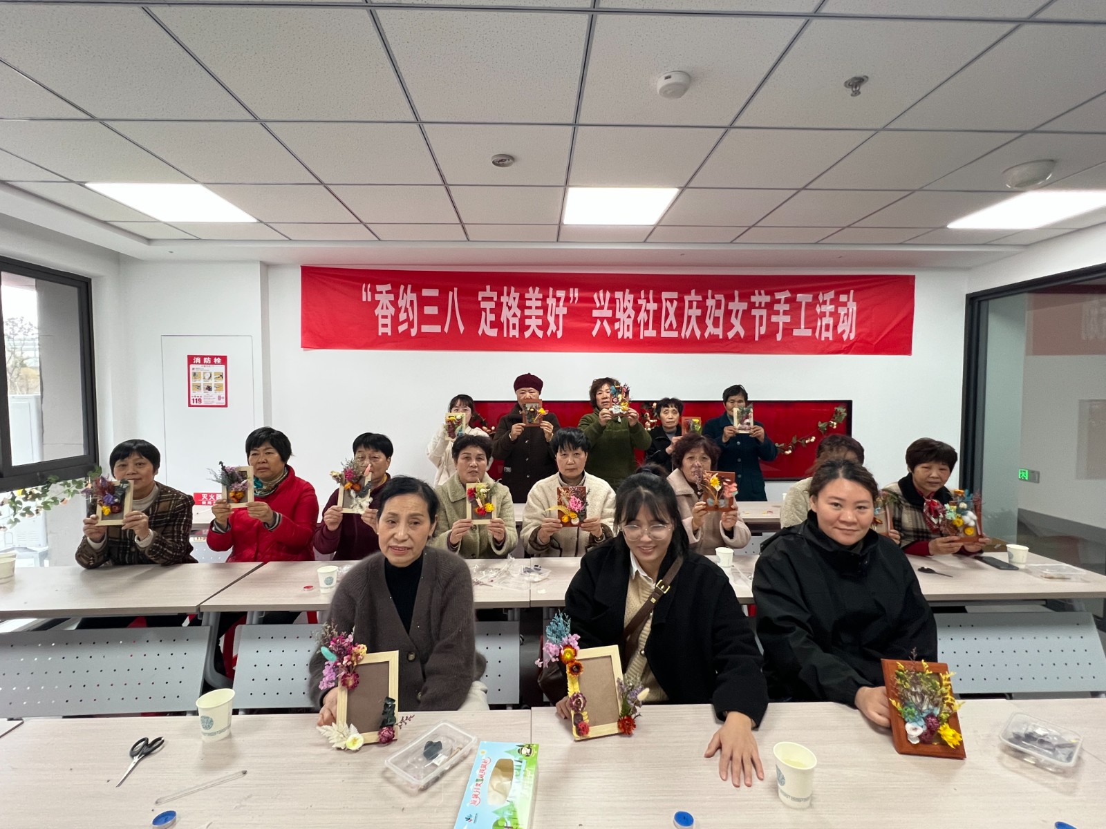 阳春三月踏青去,春意盎然笑开颜。为进一步丰富女性的精神文化生活,提升女性艺术品位,加强妇女群众的沟通与交流。3月3日上午,兴骆社区特开展“香约三八,定格美好”——庆妇女节干花相框DIY活动。
