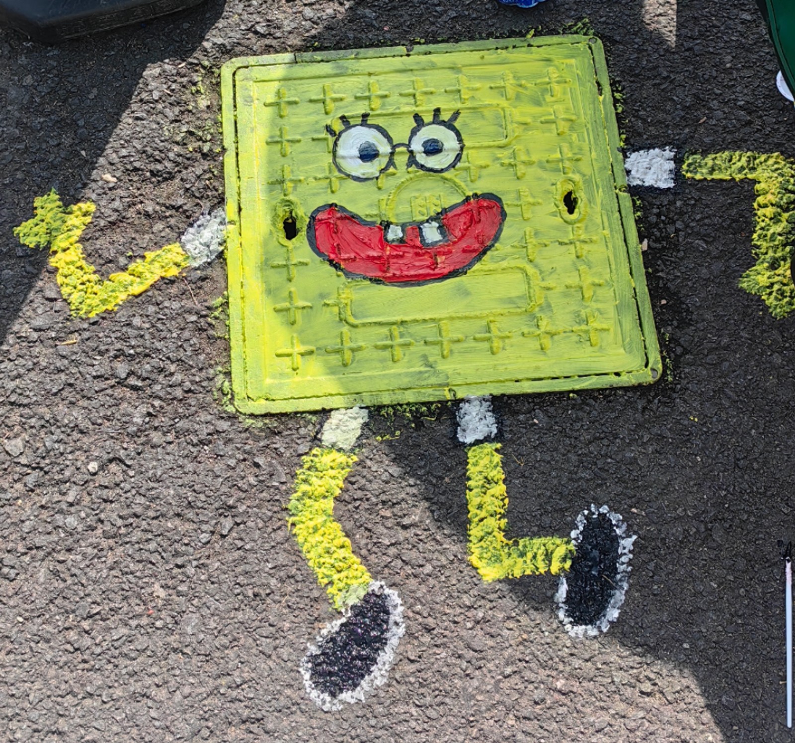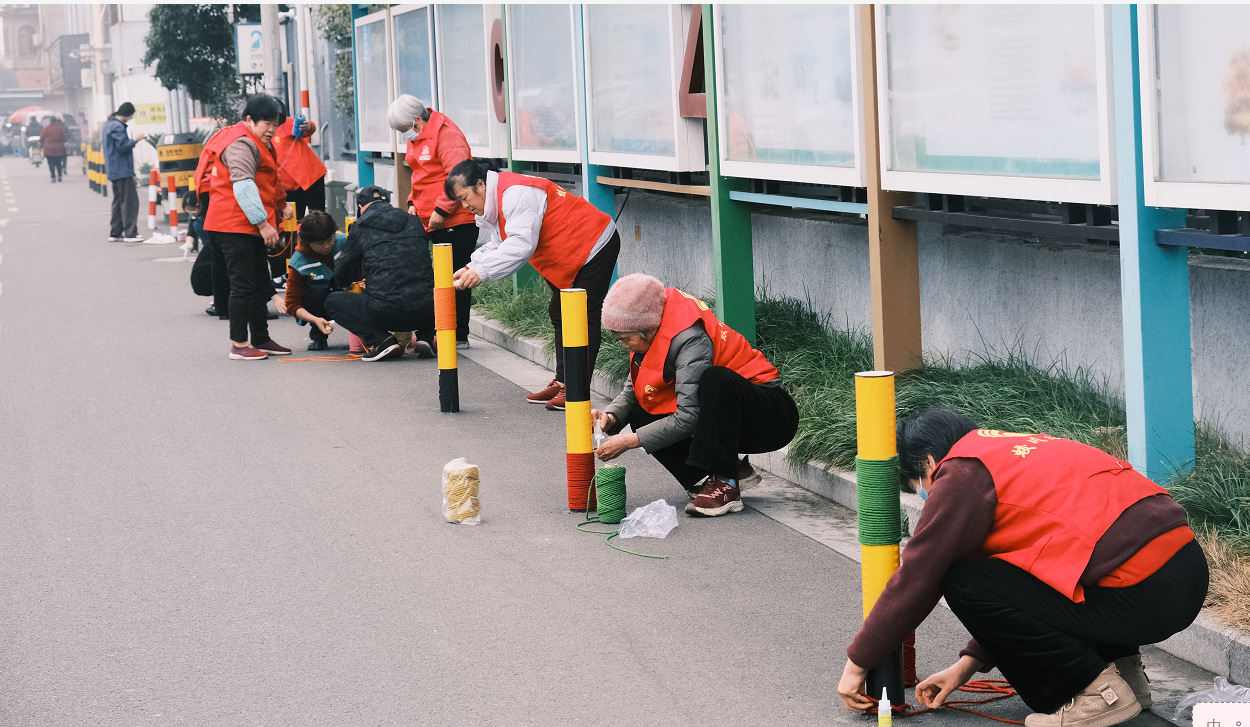 活动现场,多彩的环保颜料整齐排列,井盖变成了充满创意和艺术感的画布。村两委班子和小朋友们手持画笔和颜料,围绕一个个井盖忙碌着。画笔在井盖上轻盈舞动,在大家的精心绘制下,原本晦暗单调的井盖,有的变成了色彩缤纷的皮包、可爱的海绵宝宝,有的则成了宣传垃圾分类和防范电信诈骗的“头版”,逐一焕发出了全新的生机和活力。另一边,网格长和志愿者们用彩色麻绳缠绕停车桩,平平无奇的停车桩拥有了春日多巴胺配色,路过就能免费“充电”好心情。