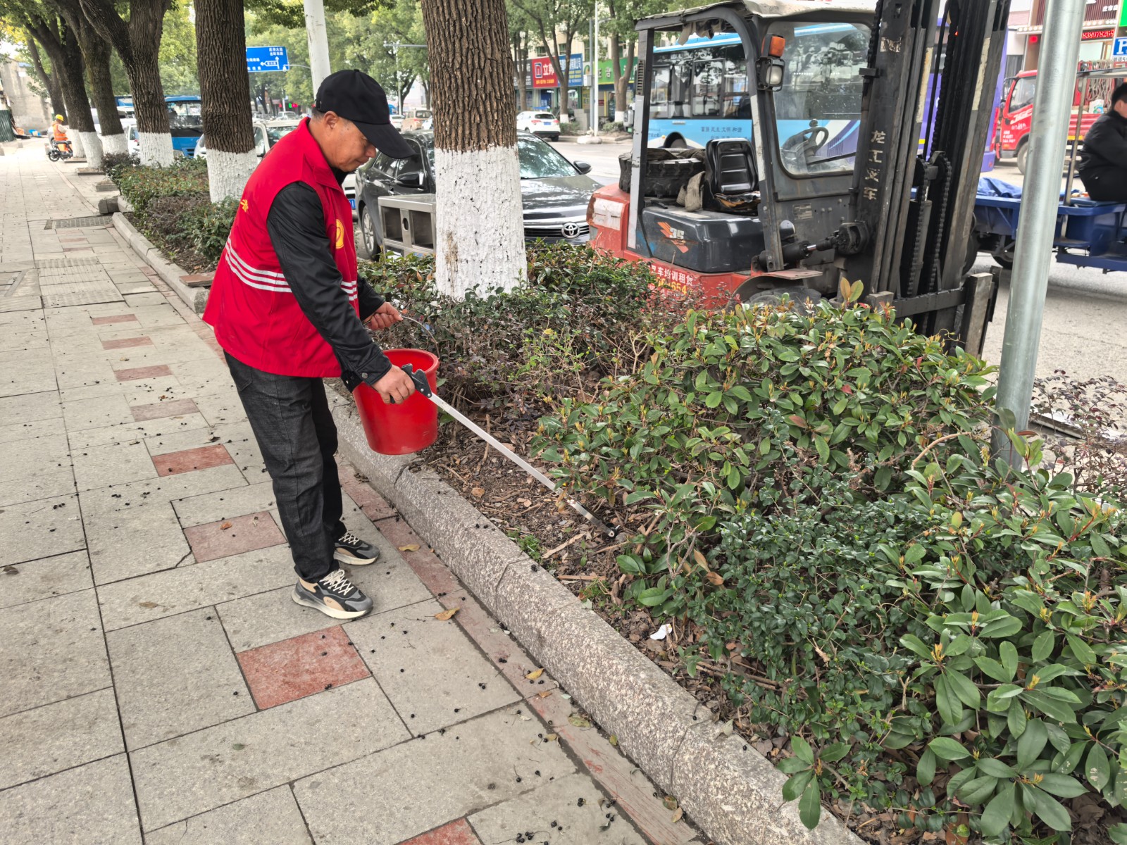 志愿者及越华青年志愿者擦拭公交站台玻璃、座椅、清除小广告,为市民提供干净舒适的候车环境。针对宣传窗上的污渍和非法张贴物,他们用专业工具细致清理,确保信息展示清晰美观。网格员与银龄志愿者手持夹钳、垃圾桶,深入绿化带清理白色垃圾、枯枝落叶,并对灌木丛中的隐蔽杂物进行彻底清除。