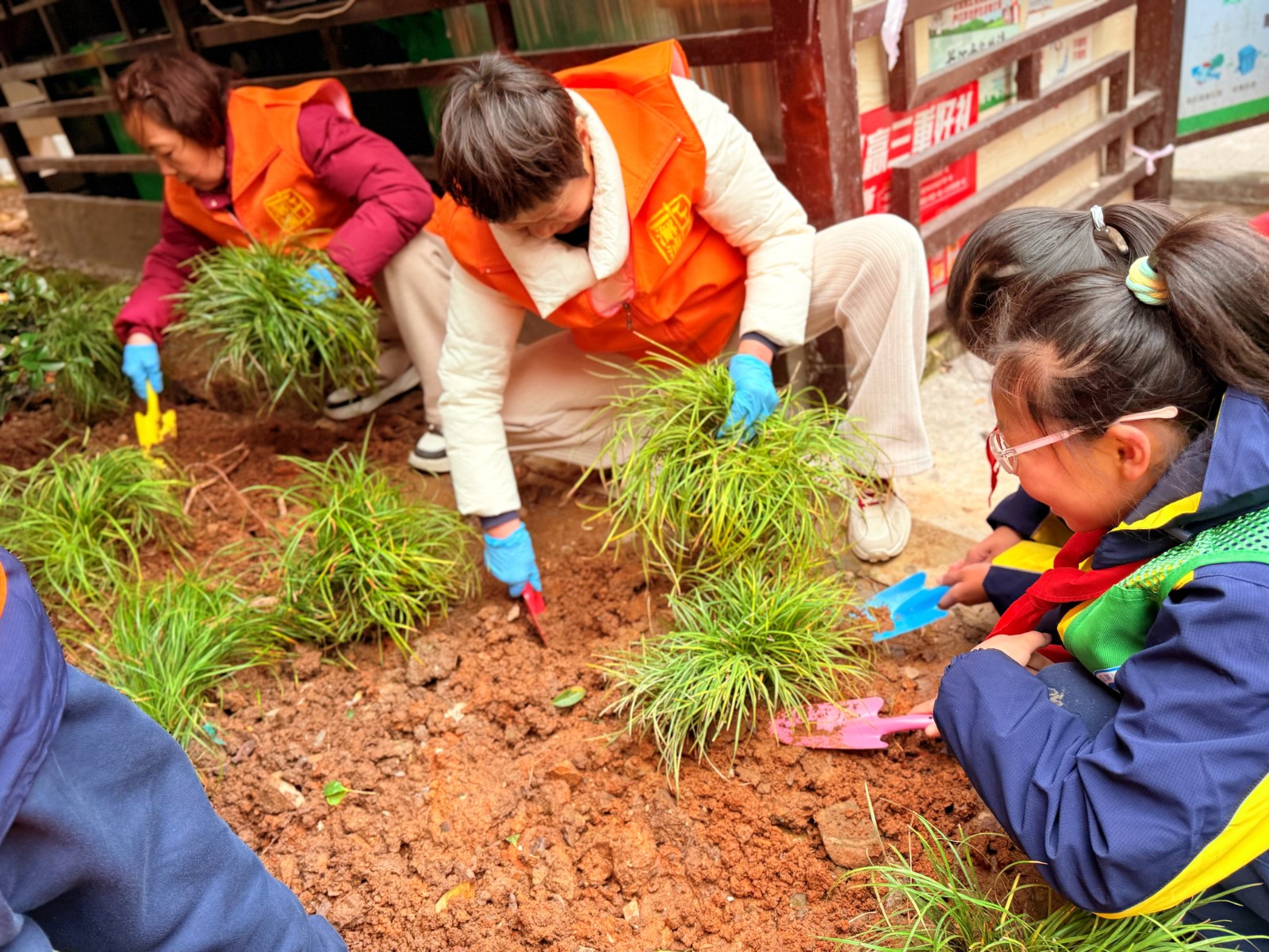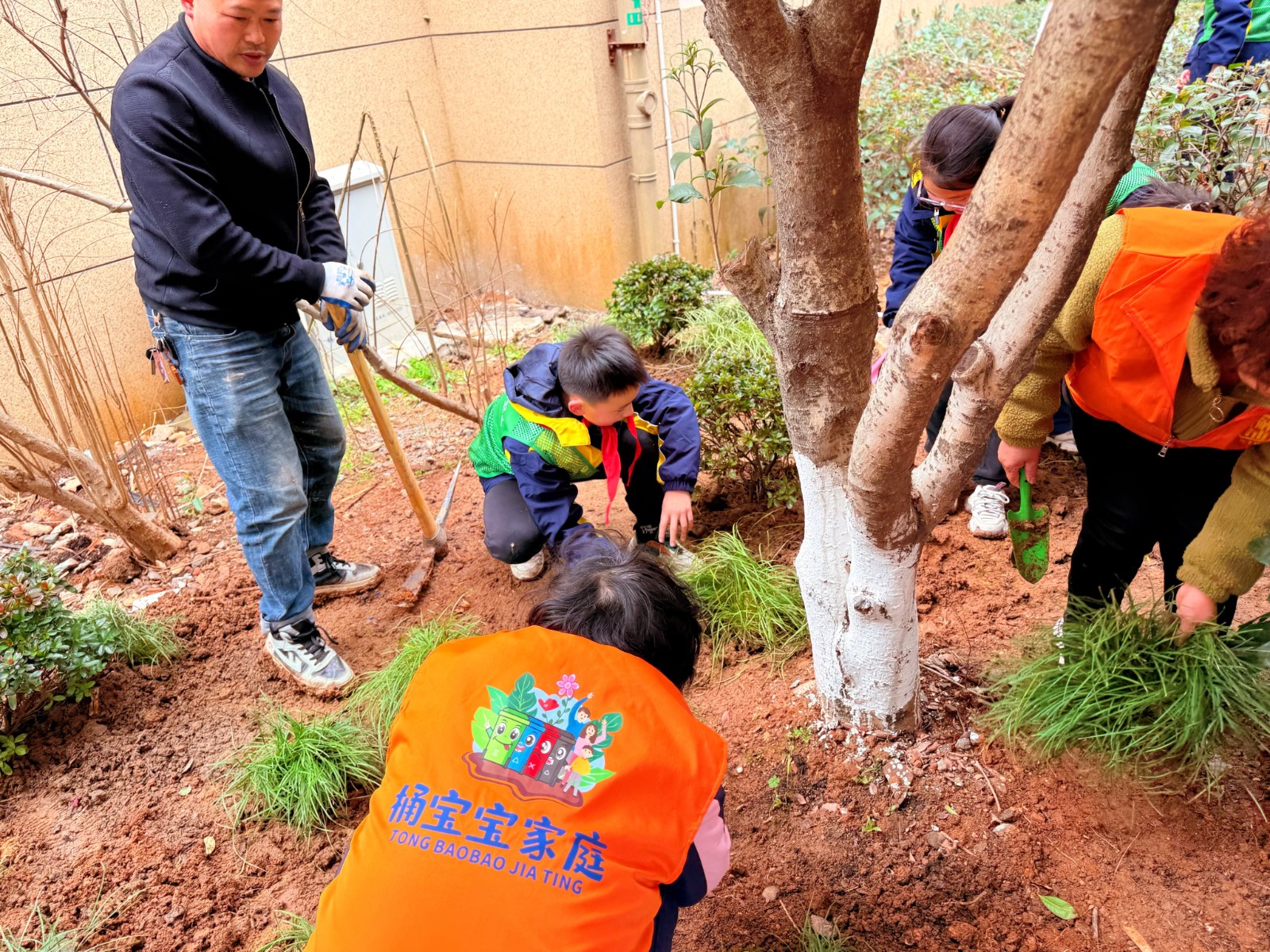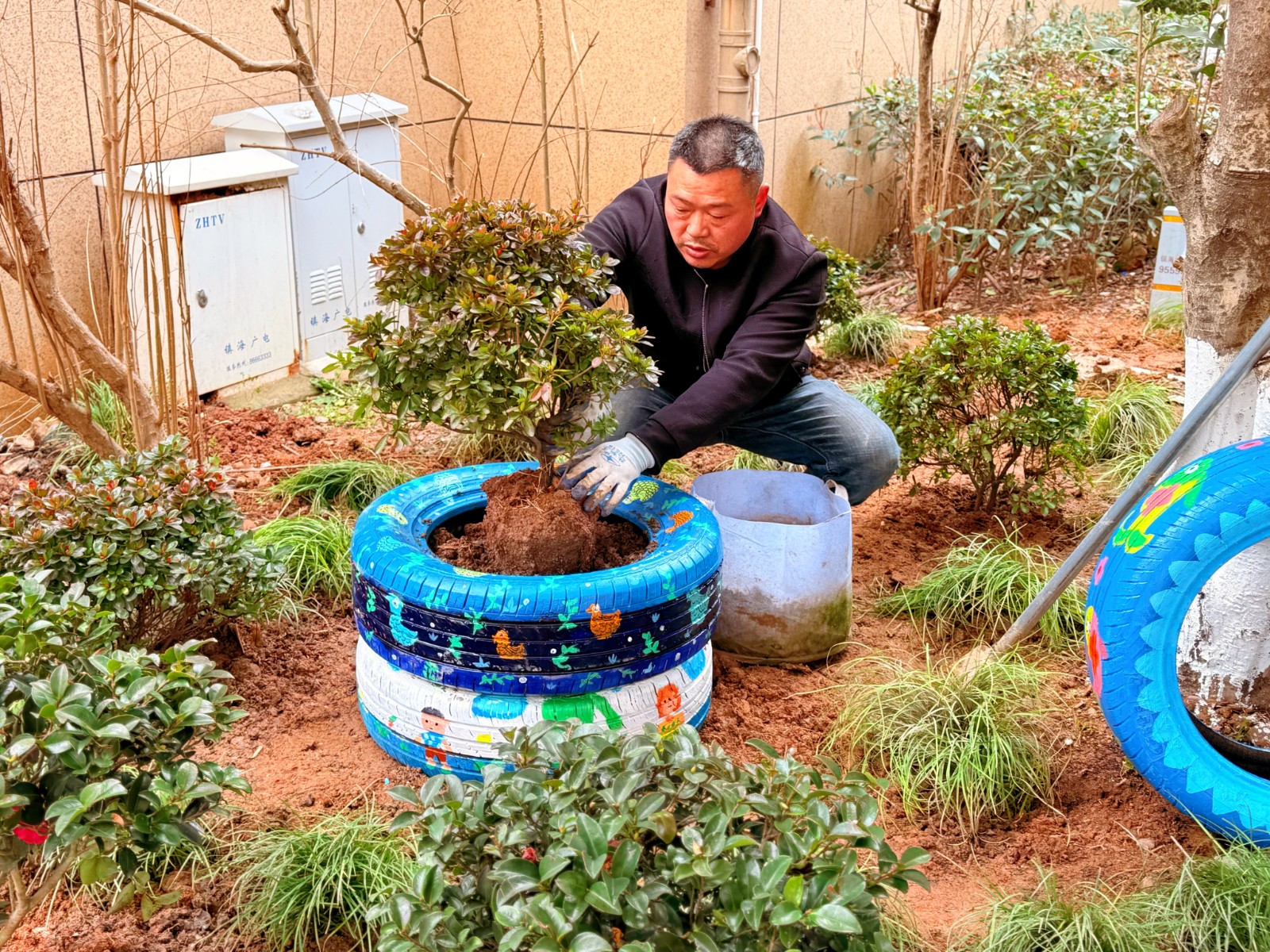 由社区教育学院的同学和社区教育志愿者组成的“公益园丁团”,大家握着锄头、撸起袖子,共同完成了挖土、放苗、压土、踩实等一系列种植过程,为社区的角角落落种上了一颗颗绿色的苗木。