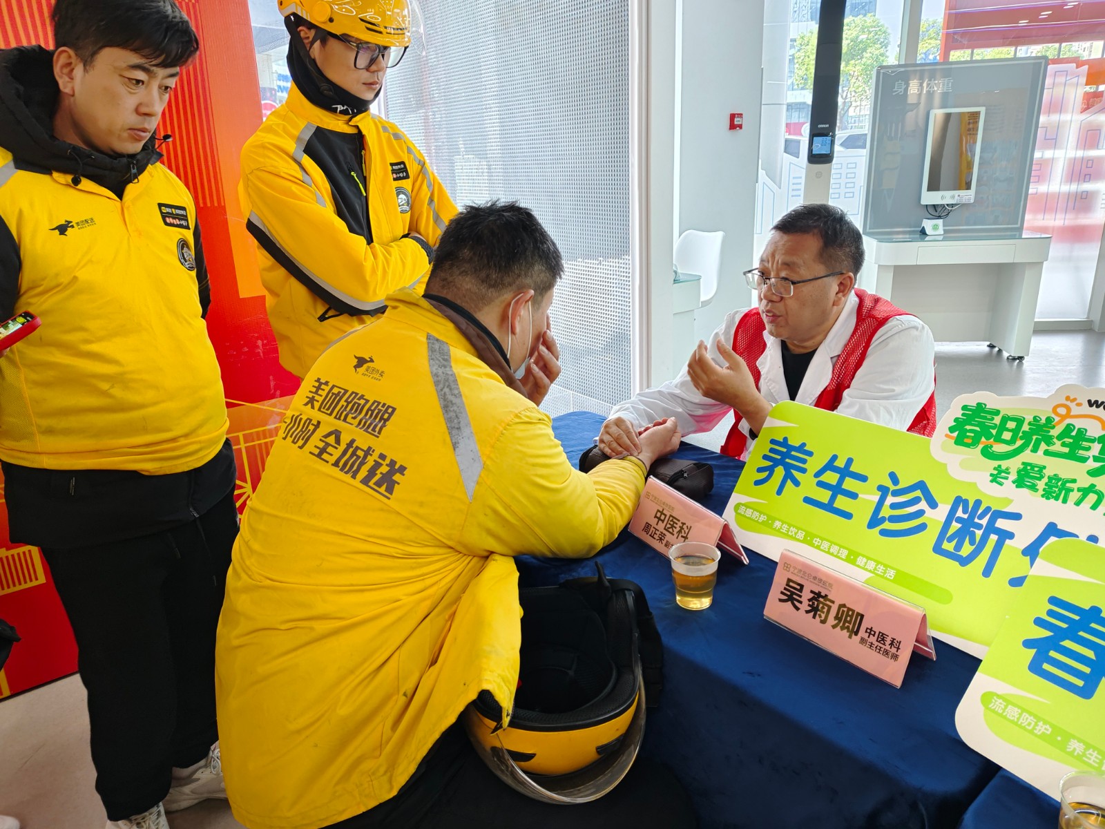 “阳春三月,这时候天气时暖时寒,气候波动较大,容易感冒……”活动伊始,宁波北仑卓欣医院的胡医生从气候特点出发,向外卖小哥们介绍了适合春季的饮食、生活起居和养生要诀等各方面知识,深入浅出地阐释了中医养生理念。现场互动答疑环节,胡老师还针对大家提出的问题给出指导性建议,并引导大家掌握正确的养生之道。“平时跑单忙,经常凑合着吃点饭,今天才知道作息不规律对健康影响这么大!”外卖员小雷的话语,道出了众多新就业群体的心声。