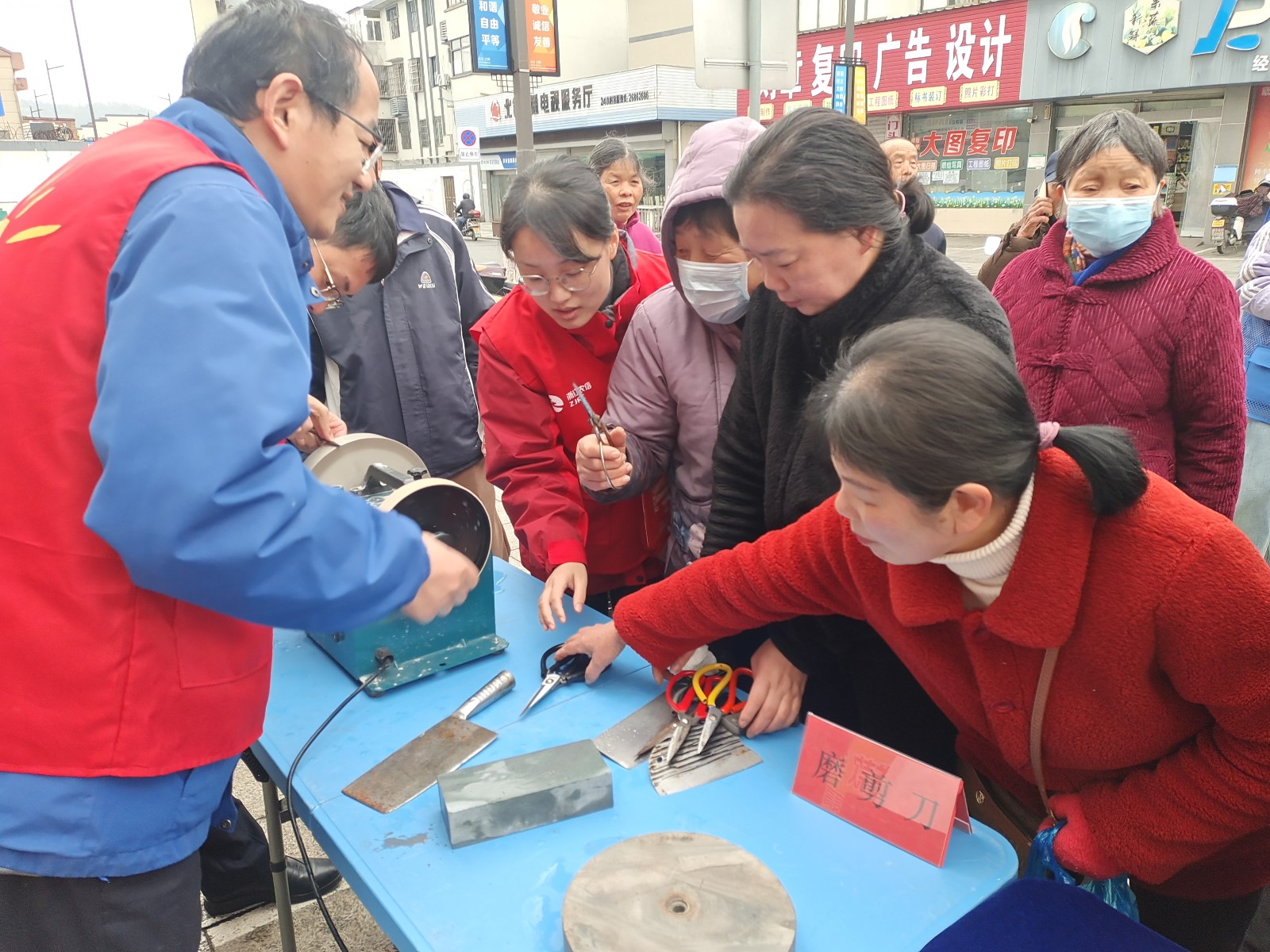 “现在找个磨刀的地方可不容易,社区这个活动真是想到我们心坎里去了!”在磨刀区,农商银行白峰支行的志愿者手持磨刀石,熟练地为居民们打磨菜刀、剪刀。看着自家菜刀在志愿者手中变得锋利,虞大爷笑得合不拢嘴。“老伯,如果您买到了假冒伪劣商品,您知道要怎么处理吗?”“这个还真不知道,只能自认倒霉吧。”“您可以合理维护权益,拨打12315消费者热线举报......”白峰市场监督管理所的志愿者们和居民群众积极互动,运用鲜活的事例案例科普食品安全、药品保健品等消费知识,向居民群众提供法律知识讲解,普及消费维权意识。