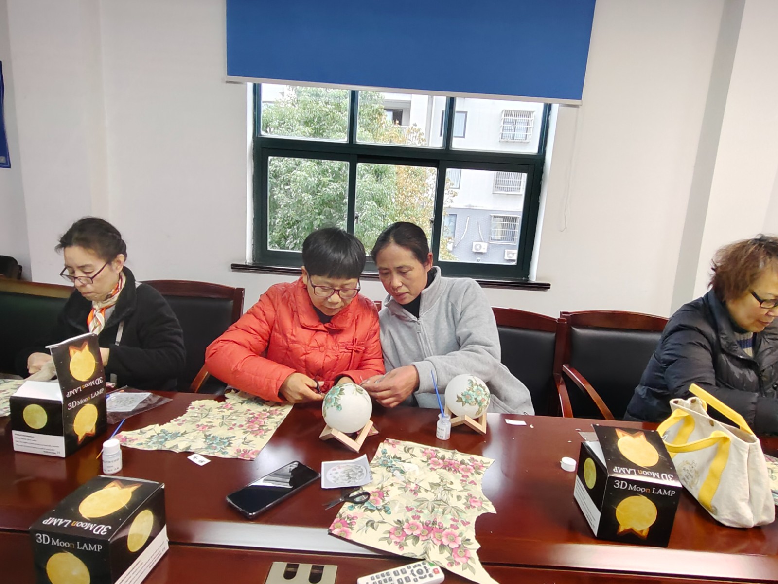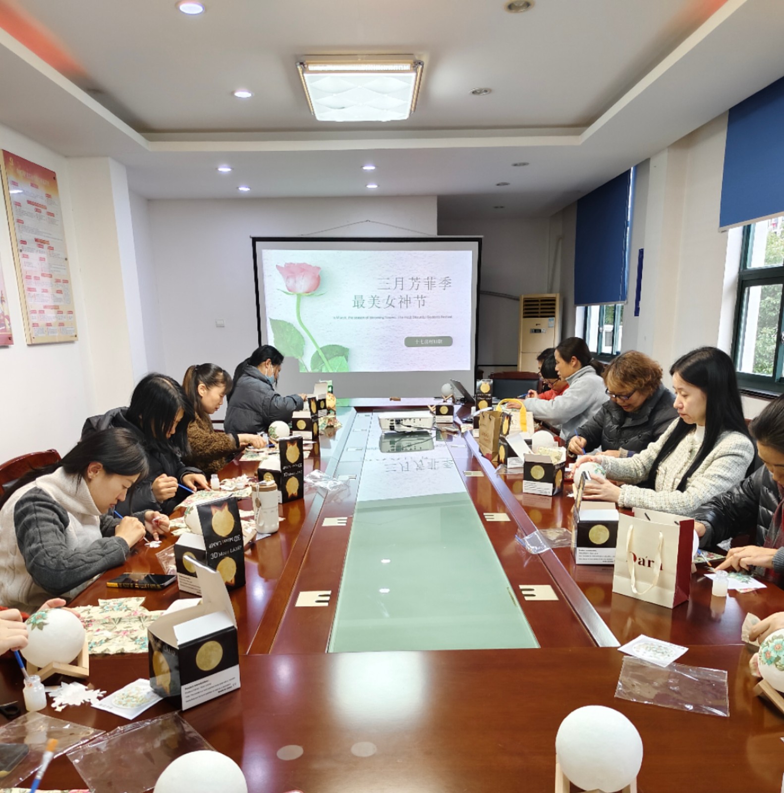 活动现场,女同胞们热情高涨,纷纷投身于台灯制作的乐趣中,选取花朵、绿叶等素材进行精心构图。大家将一片片花瓣小心翼翼地粘贴在台灯罩上,通过巧妙的搭配,一盏盏独具匠心的台灯逐渐成型,制作完成后,进行了亮灯仪式。灯光透过花瓣洒下,柔和而温暖,每一盏台灯都散发着独特的魅力。不仅展现了无尽的创意与智慧,更点亮了这个温馨的午后。
