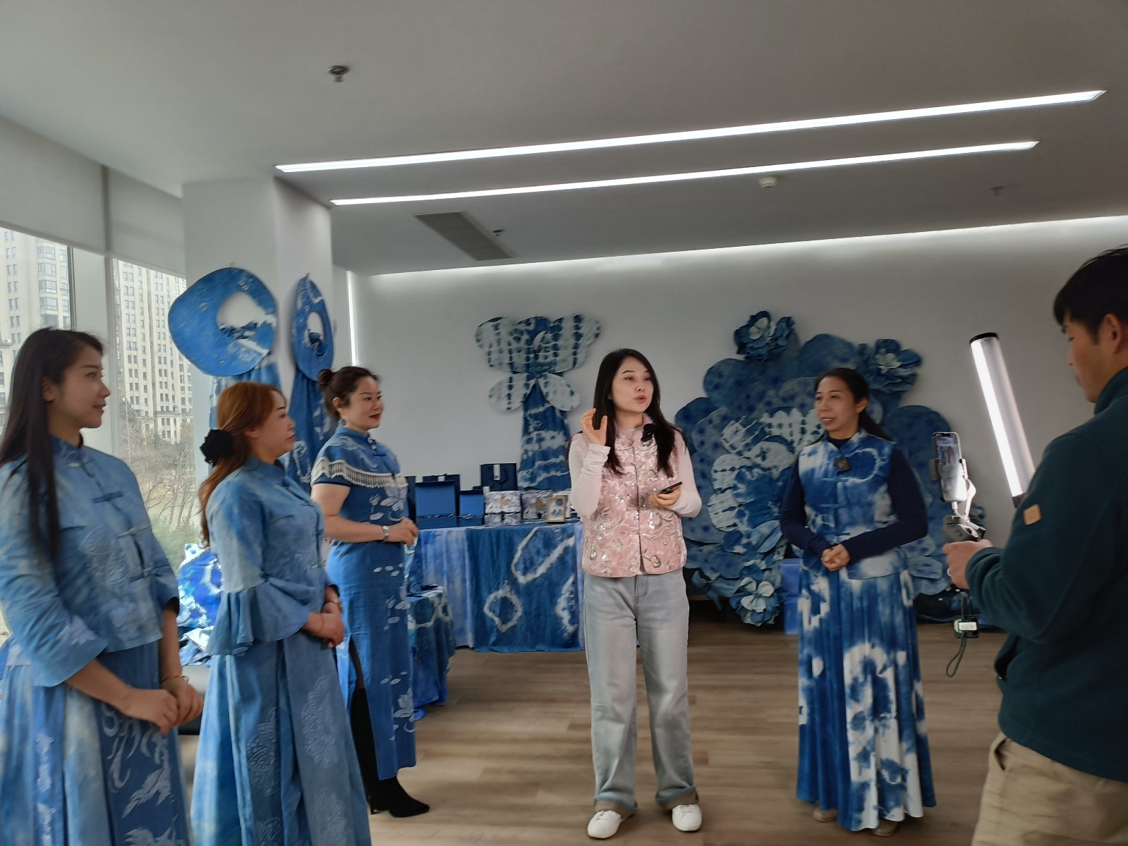 “浃江巧妇”共富工坊青墩点,王丽老师致力于打造网红打卡、非遗研学、创客沙龙为一体,通过非遗扎染研学,让非遗文化和自然融入,取于自然,展于自然,让更多的人认识非遗文化,感受非遗手作的魅力。“我们要让扎染从展品变成时尚单品,走入千家万户工坊负责人王丽介绍