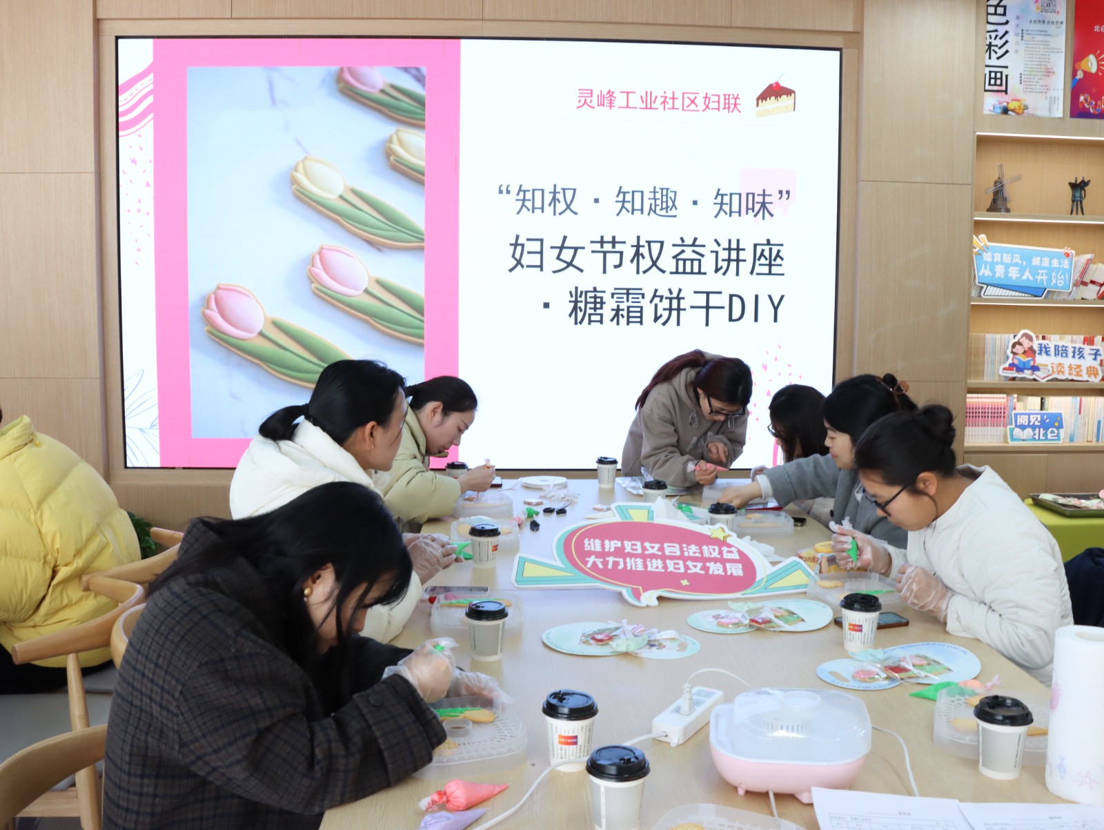 “律动春风里,巾帼半边天”,36日,灵峰工业社区党群服务中心举办知权·知趣·知味妇女节专题活动,吸引辖区20余位女职工参与。通过"法律护航+生活美学"的双向赋能模式,在普及《妇女权益保障法》的同时,以甜蜜DIY小饼干手作缓解女职工工作压力。